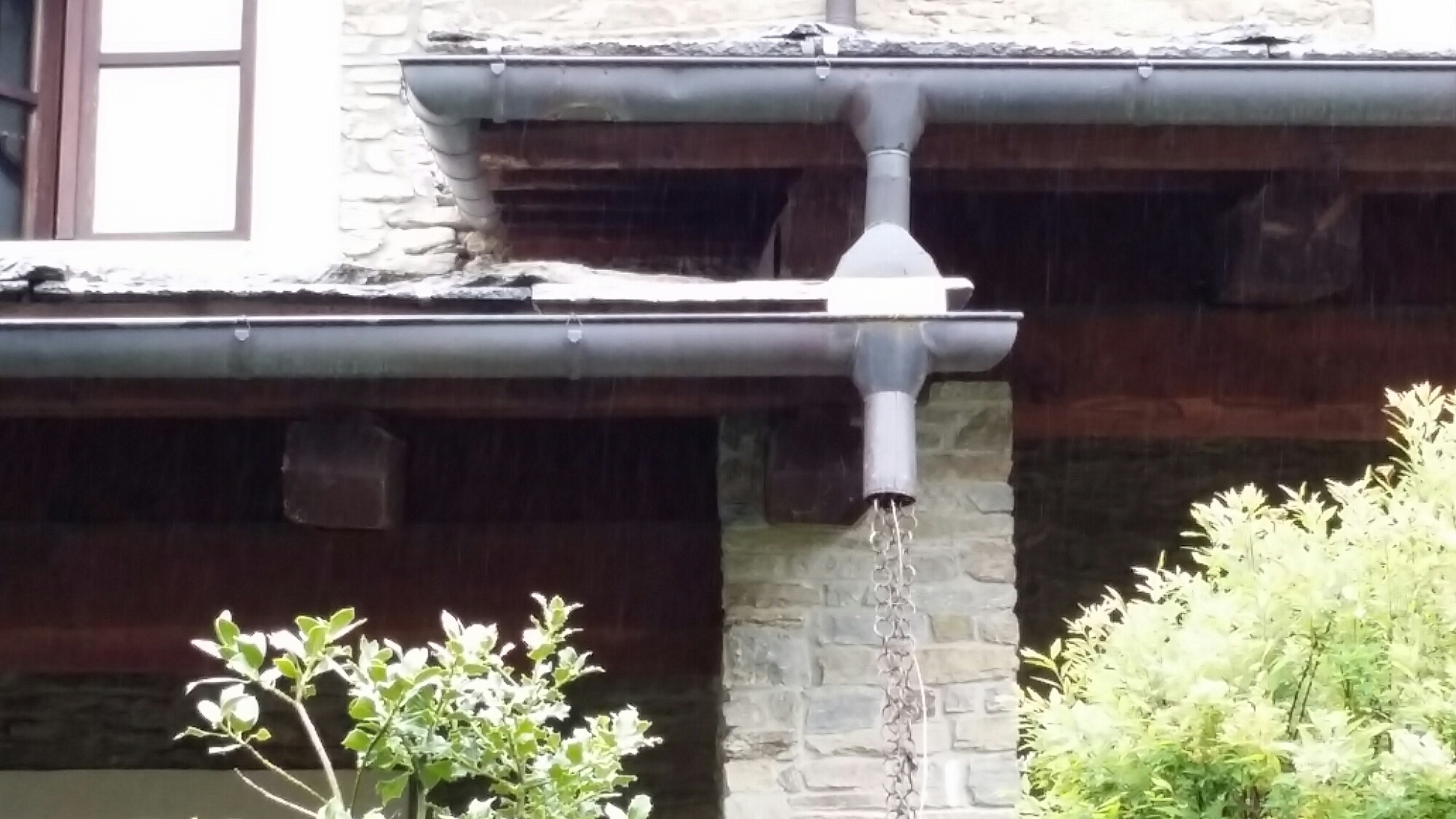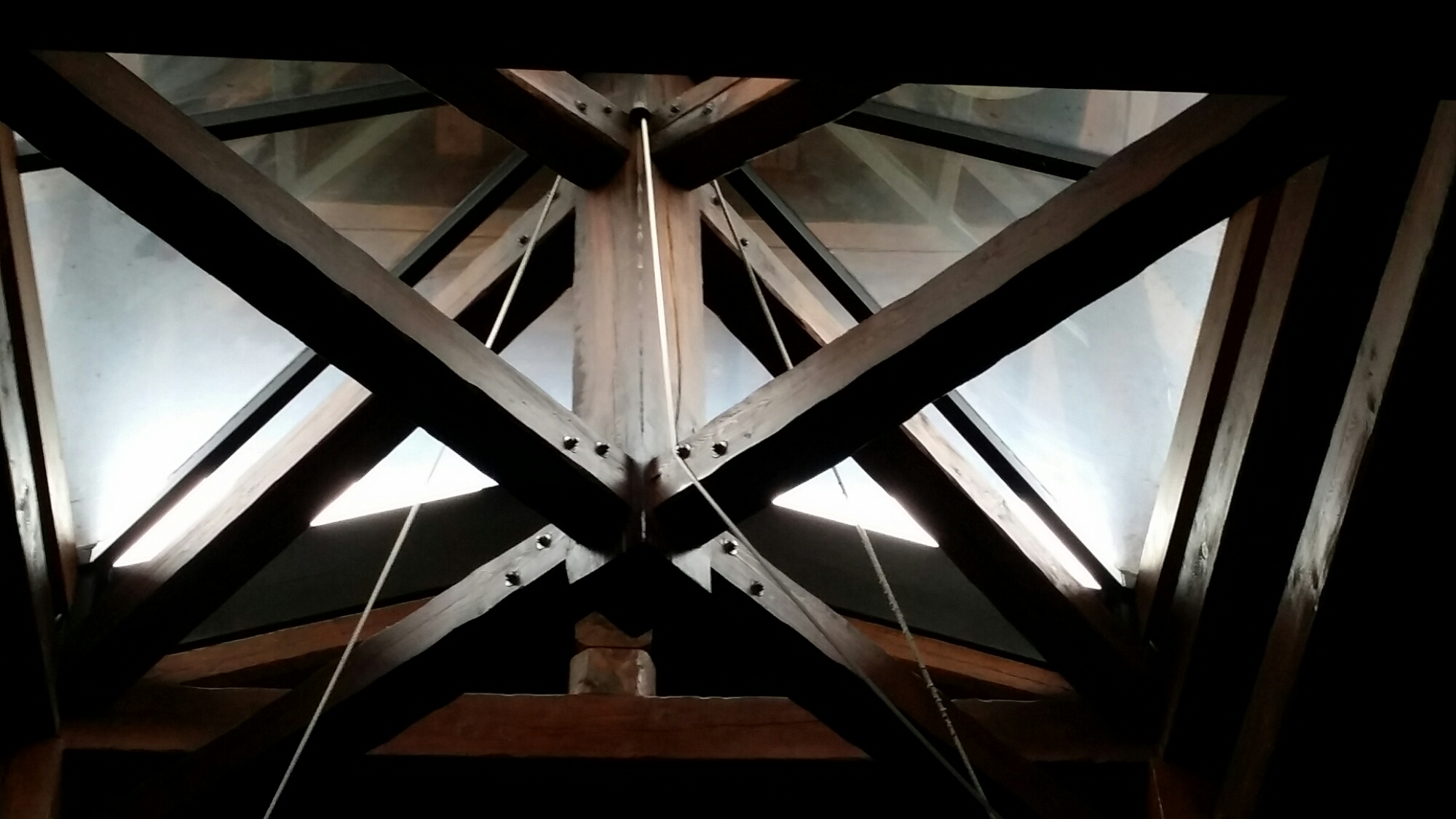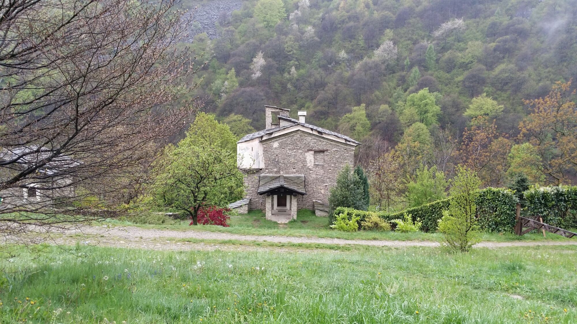One looks out of the side of the church to the hillside beyond: