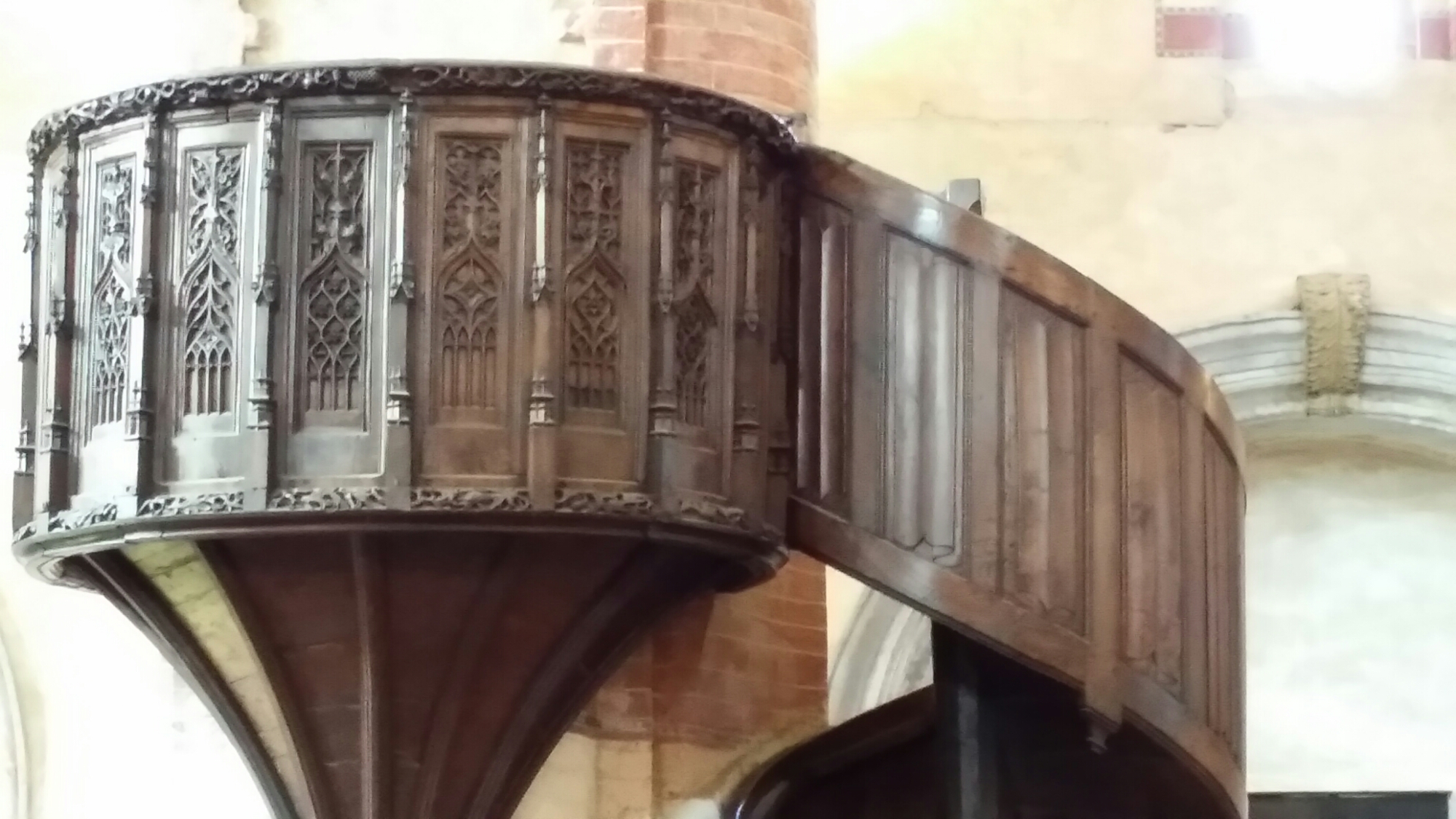 In the heat of the afternoon, we went to a Cistercian monastery in the middle of the plain north of Saluzzo. It was overrun by a party of elderly bicyclists. We sat in the cloister, had coca-cola in the bar, and enjoyed the agricultural calm, with gateposts reminiscent of Vanbrugh and a linenfold pulpit: