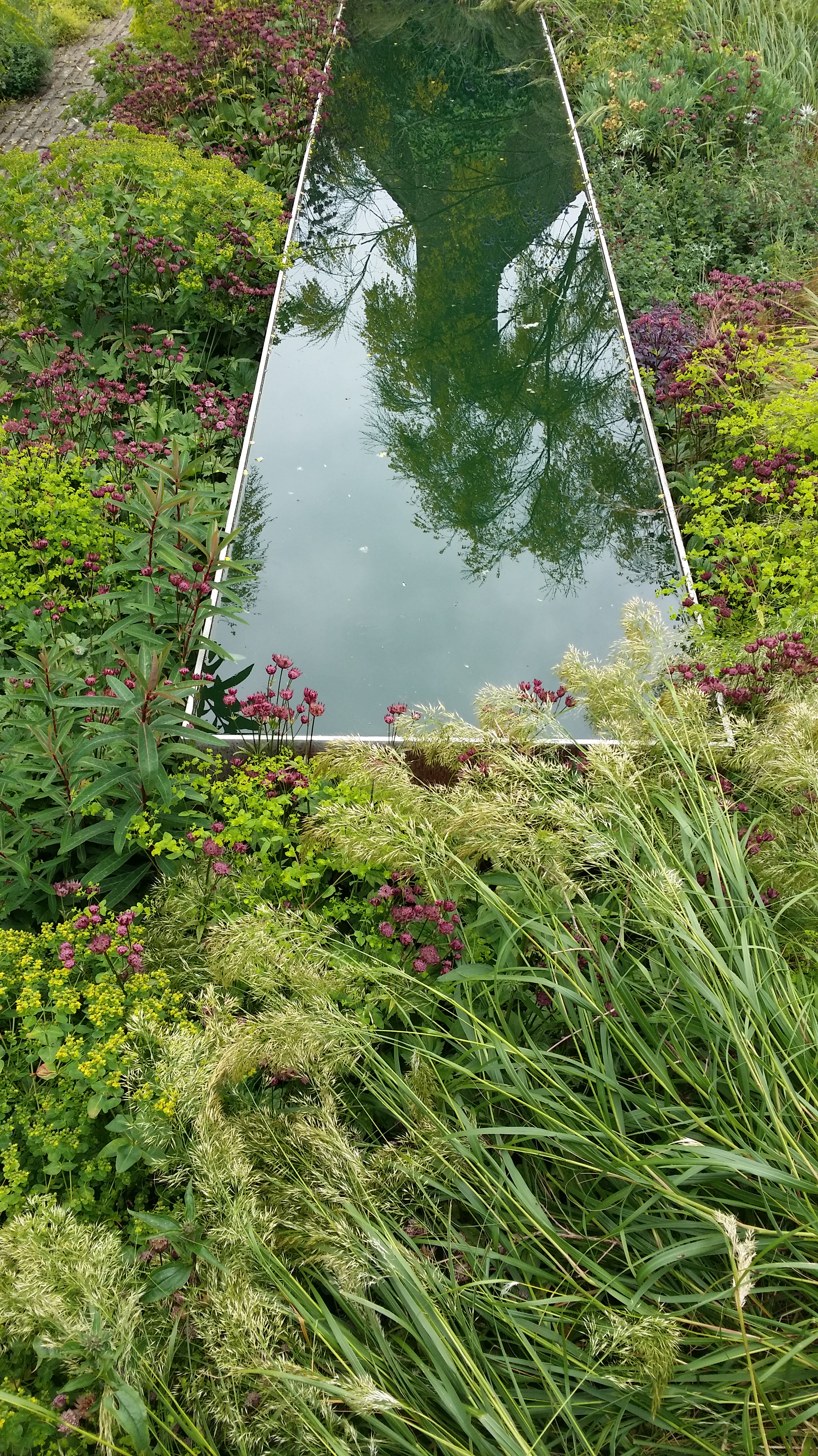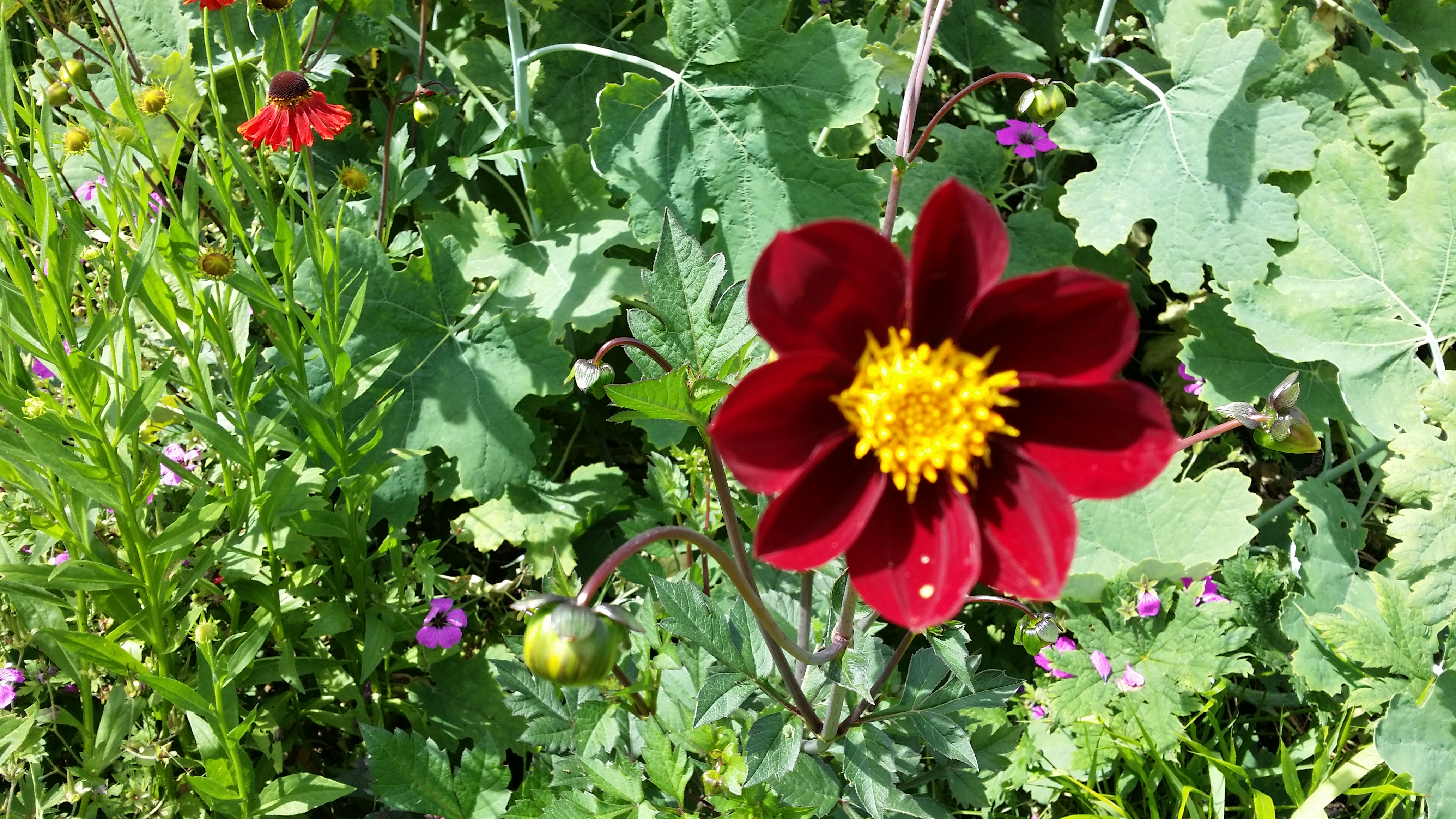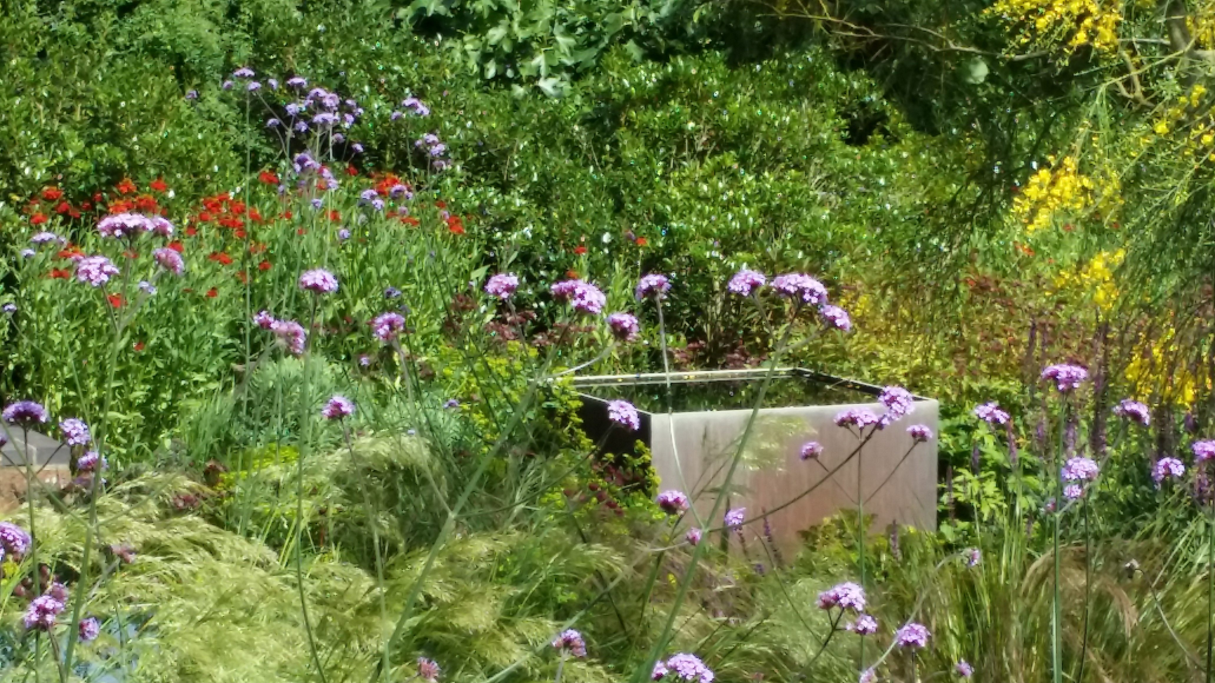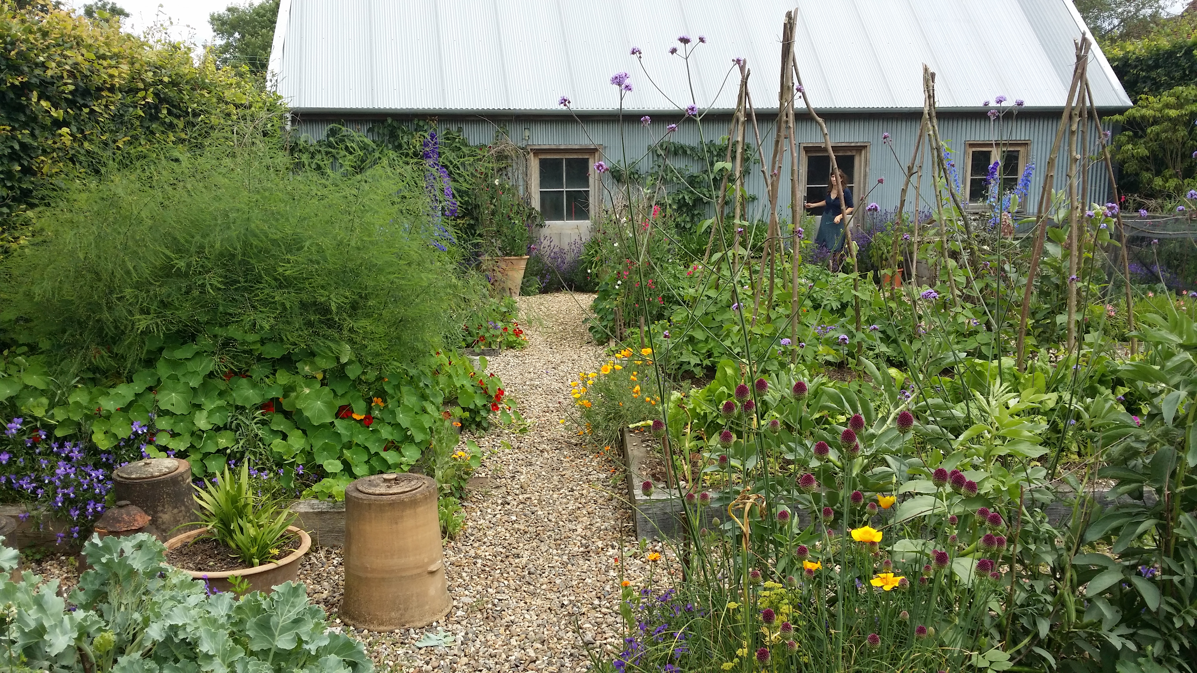 We were invited to lunch by the Stuart-Smiths to see the wonderful garden they have made in a strange bit of countryside sandwiched between the M1 and Hemel Hempstead: part semi-formal garden, part wilderness, with banks of high flowers in beds, a meadow planted with north American prairie plants and an immaculate vegetable garden. This is the semi-formal garden:
