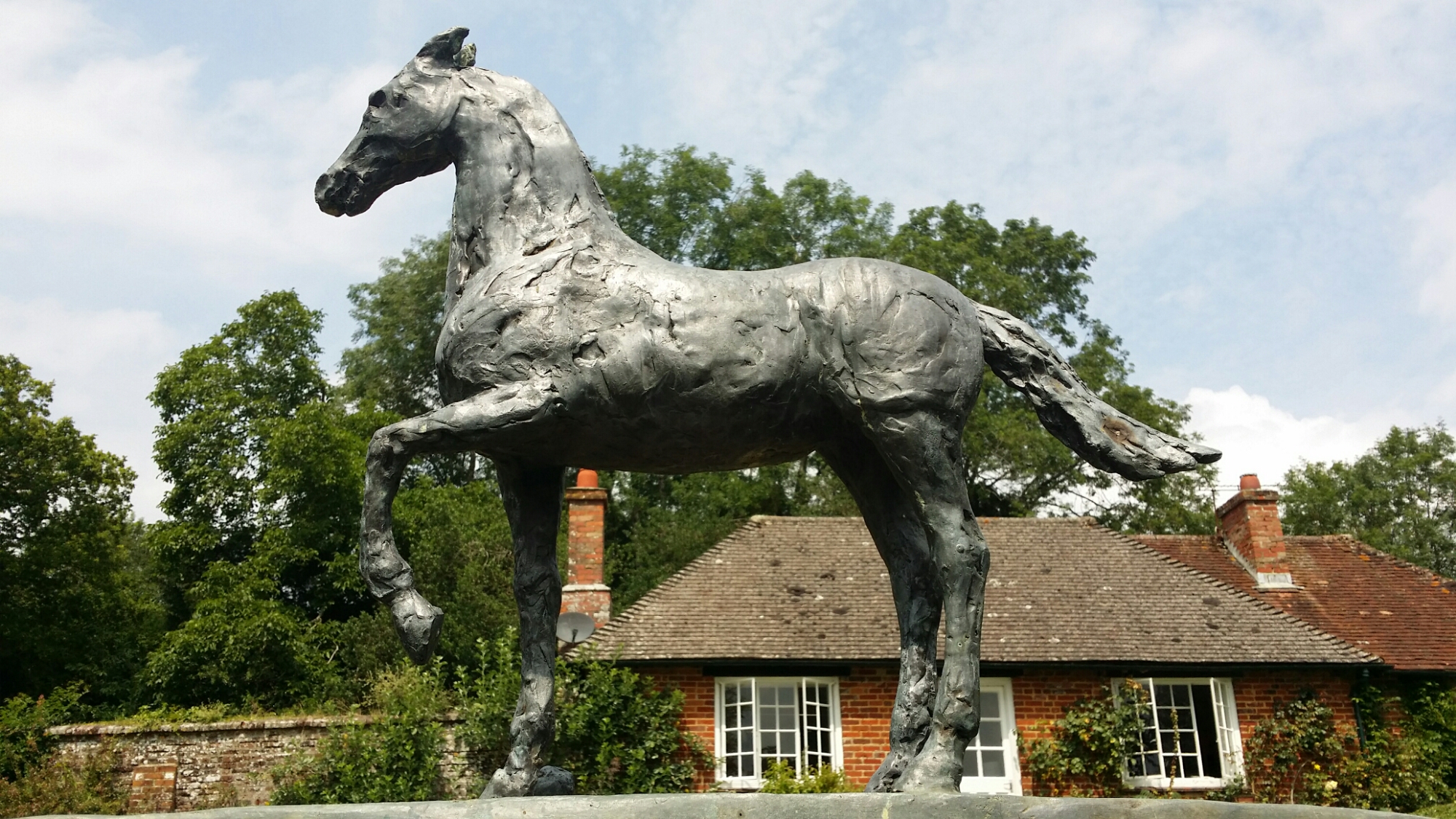 Because we were travelling down to the west country, we thought we would call in at the New Art Centre, a private house east of Salisbury which shows contemporary sculpture in the garden. I thought that they had an exhibition of the work of Richard Deacon and Bill Woodrow. It turned out that they were just opening a new exhibition of a single work by Bridget Riley installed in a single gallery like a private chapel and sculpture by Toby Ziegler. So, instead of just wandering around, the only people there, there were two coach loads from London, a speech by Andrea Rose, and lunch. We saw a horse by the President in the kitchen garden:
