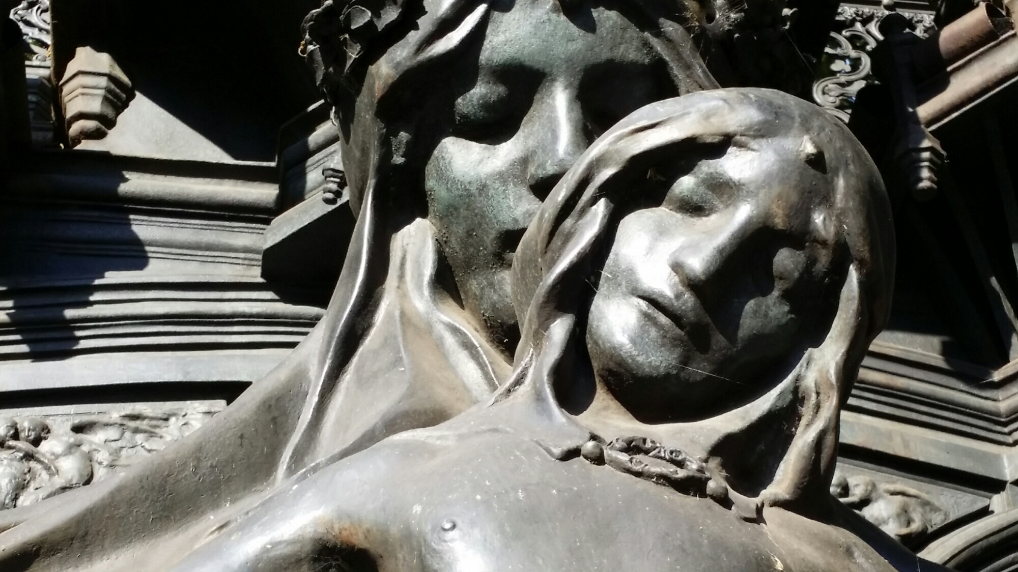 Every morning I walk past a grand and ostentatious statue in Marlborough Gate, which I have always studiously ignored. I was quite wrong. Looked at more closely, it turns out that it is a late work by Alfred Gilbert, the sculptor of Eros, former student of the Royal Academy Schools and of the École des Beaux Arts in Paris, who was forced to resign from the Academy in 1908 else be expelled (he took money for commissions which never materialised). The monument is wonderful, a grand work of late flowering art nouveau, with cobwebbed figures of Faith, Hope and Love, commemorating Queen Alexandra, the Danish wife of Edward VII. She had pleaded Gilbert’s cause with the King, sent him funds in exile and caused him to be reinstated as an RA. It’s not surprising that the monument is full of feeling:
