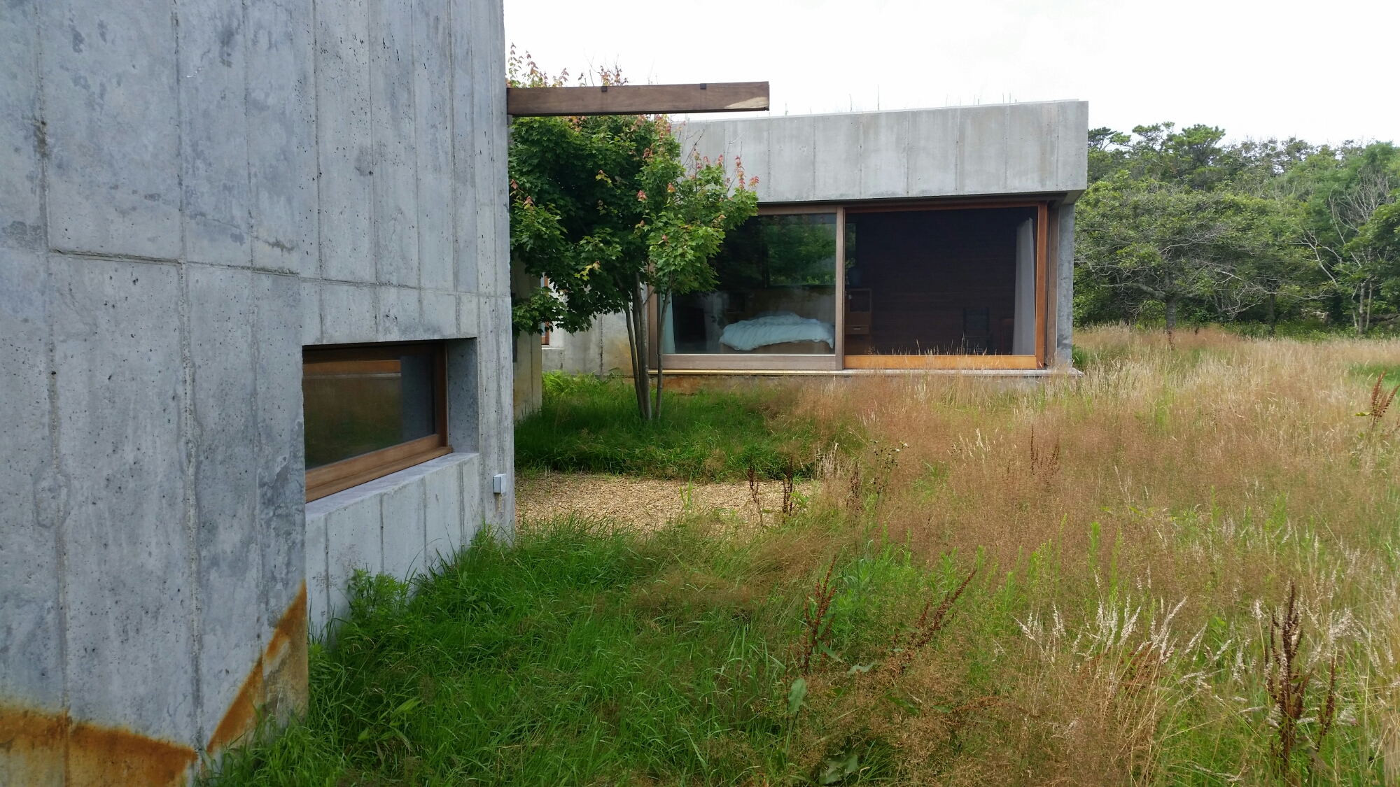 One the the pleasures of the last few days has been staying in East House, recently constructed to a design by Peter Rose, an architect who teaches at Harvard. A nicely judged, asymmetric, neo-Louis Kahn essay in concrete, wood and abstract spaces, with floors of Swiss stone from Vals, walls of douglas fir and Alaskan cedar and walls which open up to the sound of the sea.
