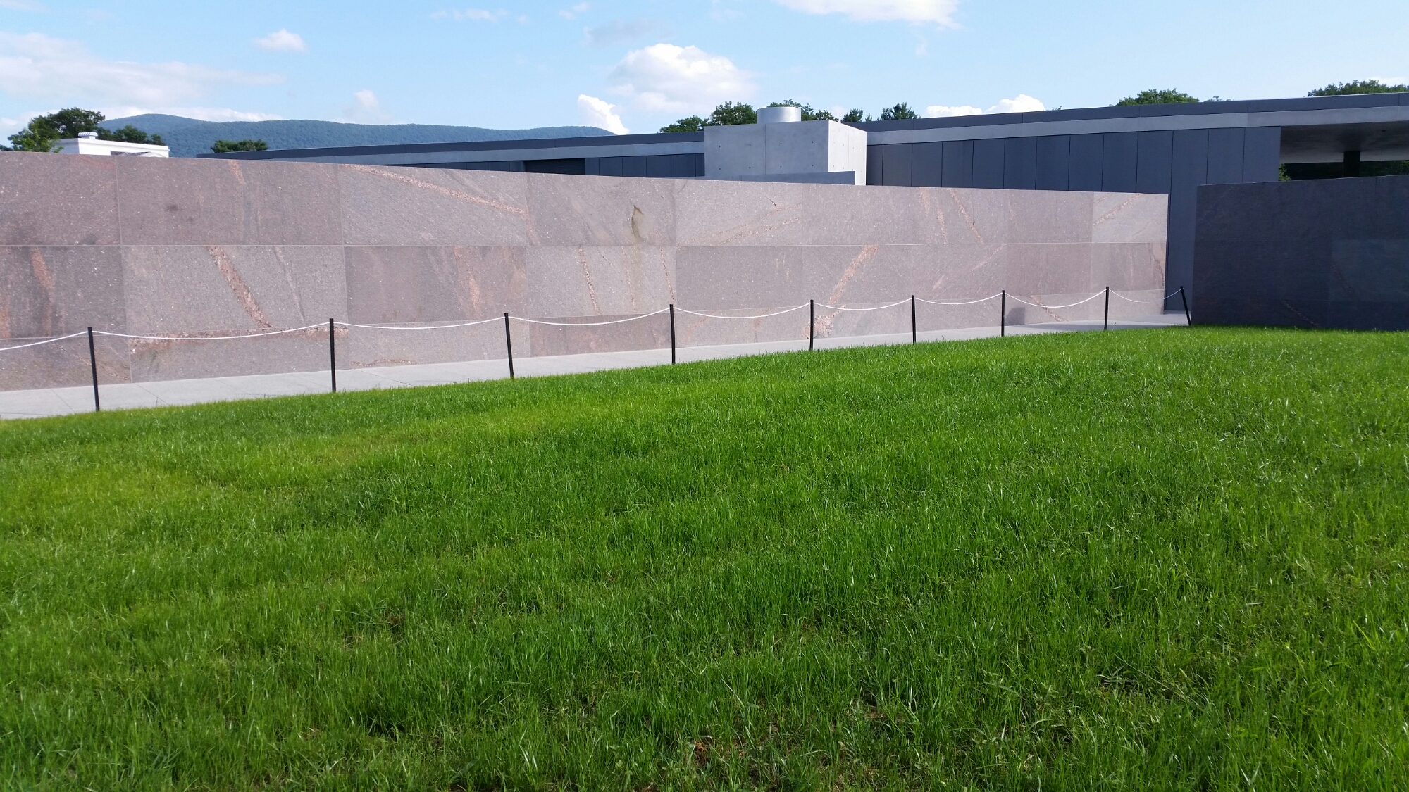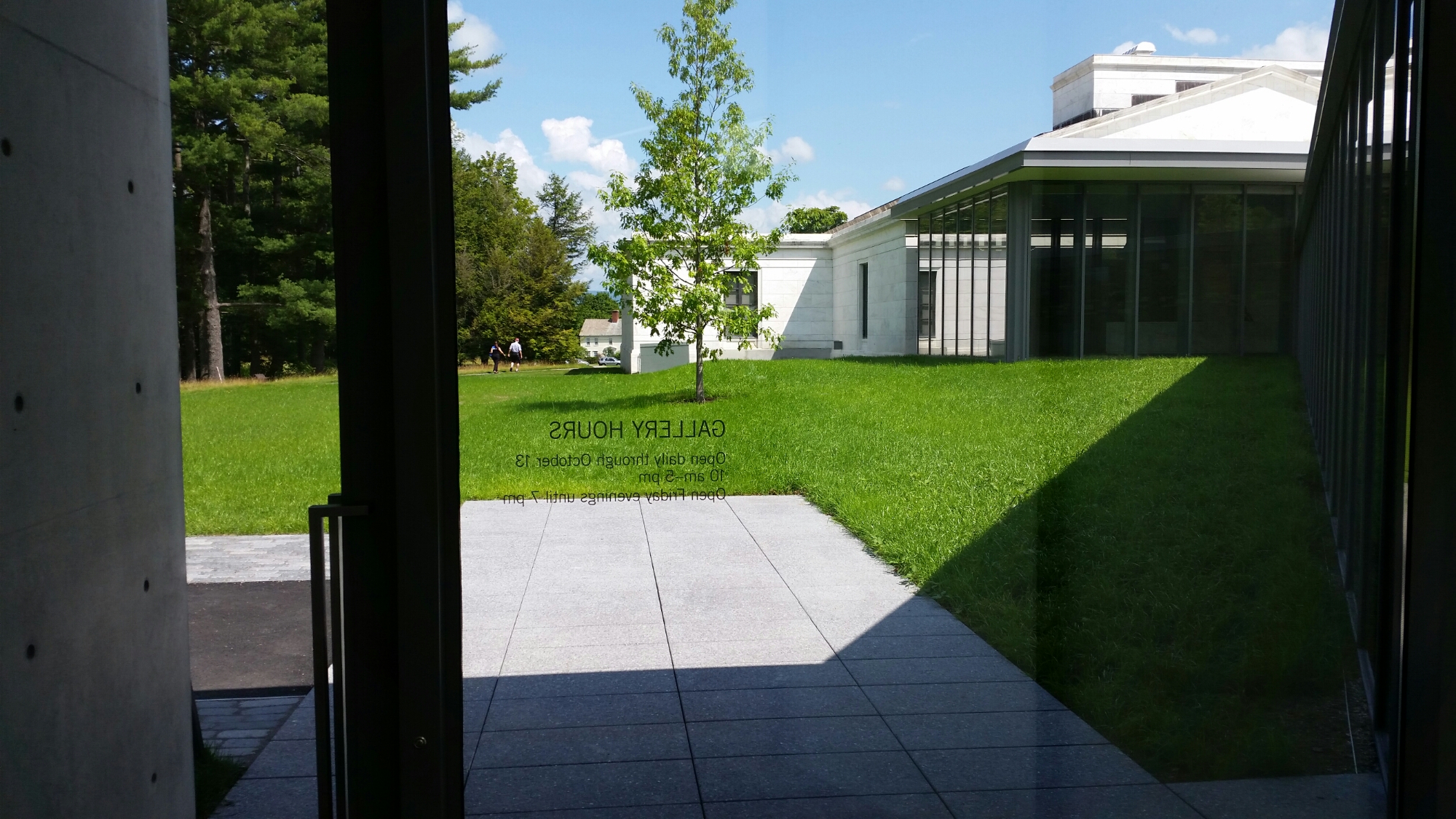 Michael Conforti very generously took us on a tour of the new Tadao Ando extension to the Clark in Williamstown. He began to think about how to connect the two existing buildings – a 1950s piece of polite neo-classicism and a 1972 work of brutalism – when he first took over as Director in 1994. He devoted the 1990s to thinking and consciousness raising and preventing the extension to the conservation building which would have scuppered any future plans. He first met with possible architects more than ten years ago, including Renzo Piano and David Chipperfield. He chose Tadao Ando in 2001 because of his skill at designing buildings underground which have access to natural daylight. Much of the building is buried, including the loading dock and services in order not to change the scale of the existing small-scale buildings and surrounding university campus. Conforti then spent the next decade raising the necessary funds and doing the detailed designs, travelling to Japan once a month. The first building Ando did (although the last to be designed) was a small exhibition pavilion called the Lunder Center at Stone Hill: