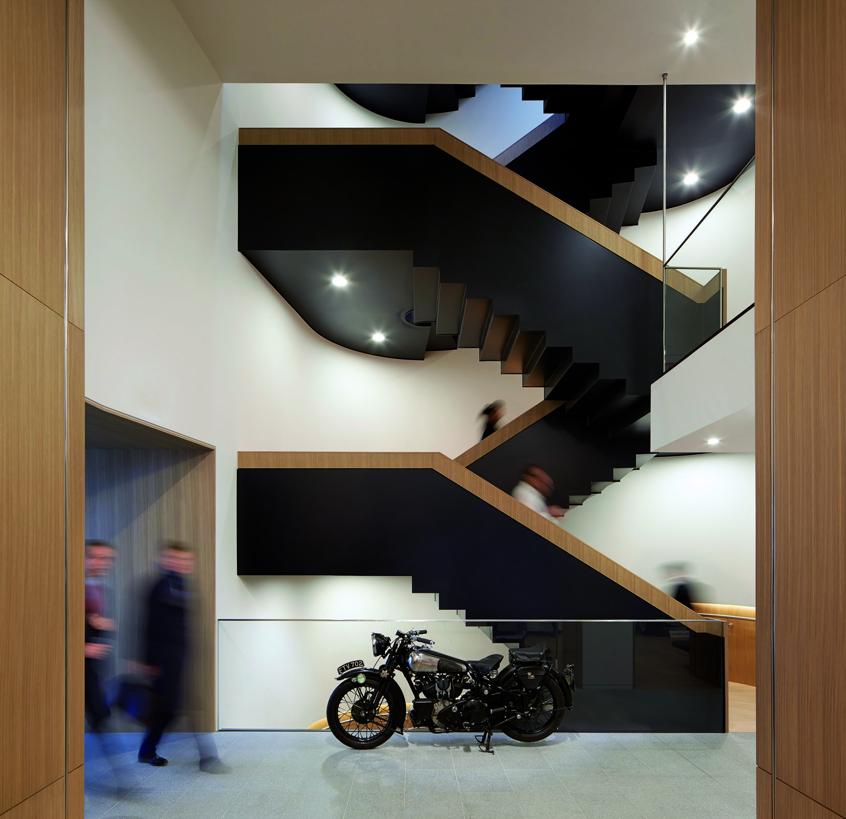 Yesterday, the President and I were taken on a tour of the not-so-new Bonhams by Alex Lifschutz of Lifschutz Davidson Sandilands, who suggested that they could hollow out a house at the top end of Bond Street to provide a grand ceremonial entrance to their auction rooms. Nothing could more obviously demonstrate the transformation of the art world into a sleekly modern business than his conversion of the higgledy piggledy old Phillips building. It now has intelligently curved staircases and hyper serviced auction spaces and a small restaurant about to open in Haunch of Venison Yard.