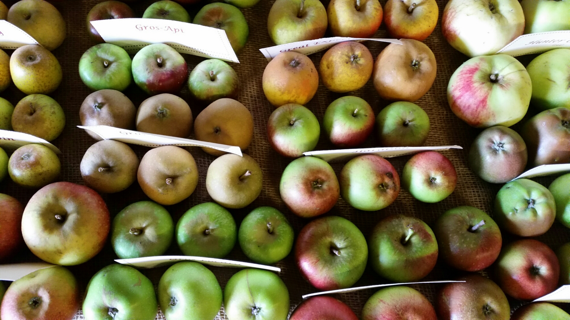 On the way back from Whitstable yesterday afternoon, we called in at Brogdale Farm, which is apple heaven. The headquarters of the National Fruit Collection and run by the University of Reading, it had a large barn full of every variety of apple displayed alphabetically: