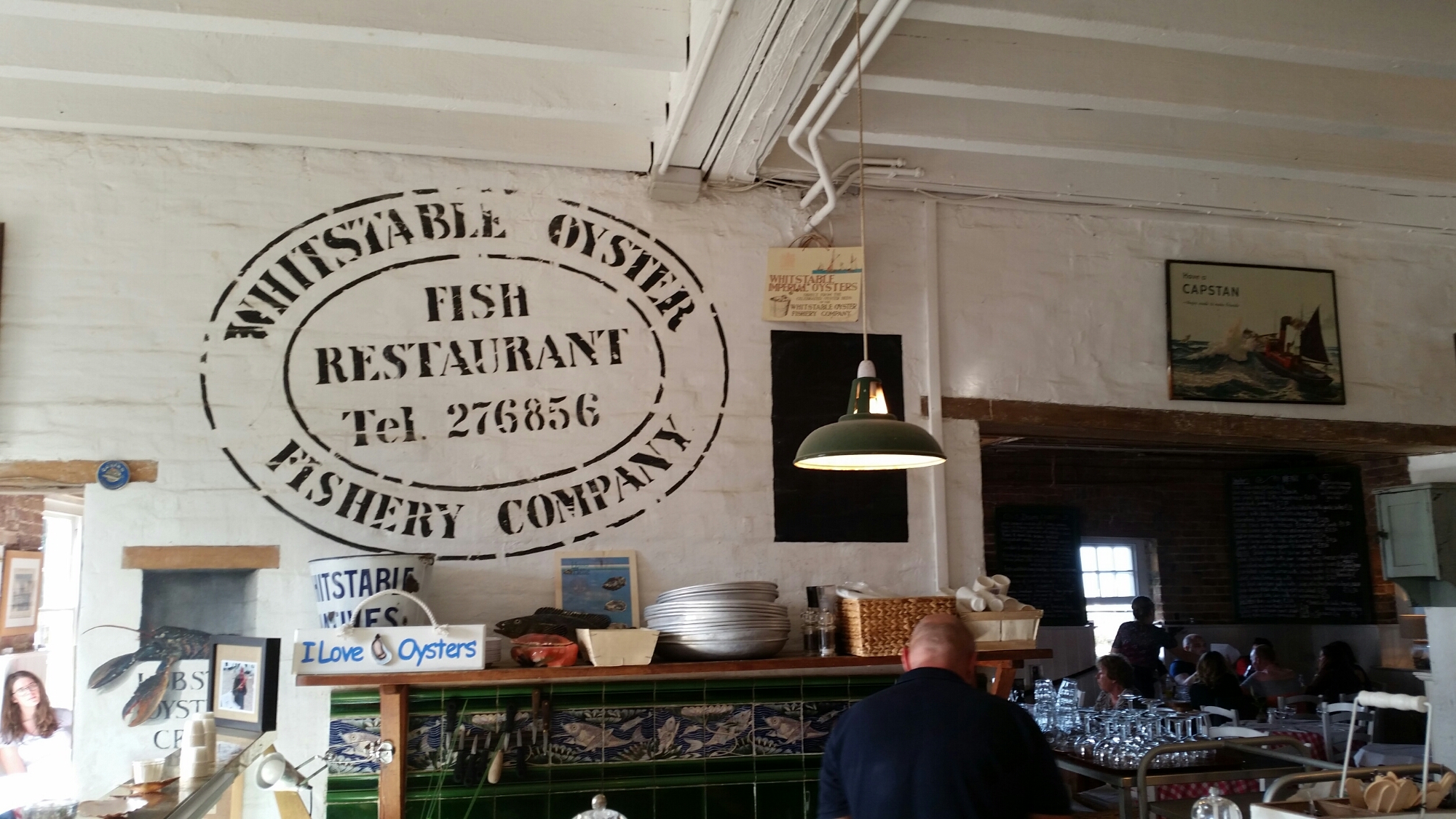 We had lunch today in the Royal Native Oyster Stores, with excellent fresh crab, Whitstable oysters and local India pale ale, full of people eating all afternoon looking out across the Thames Estuary towards Essex: