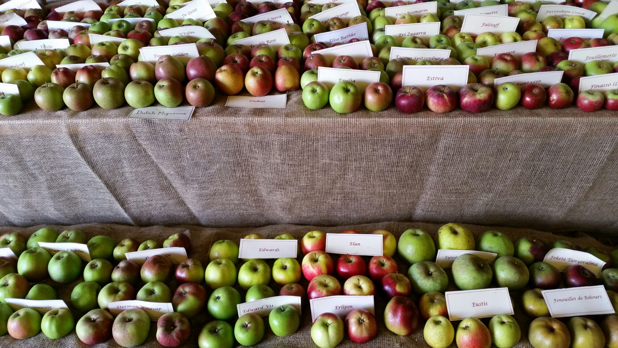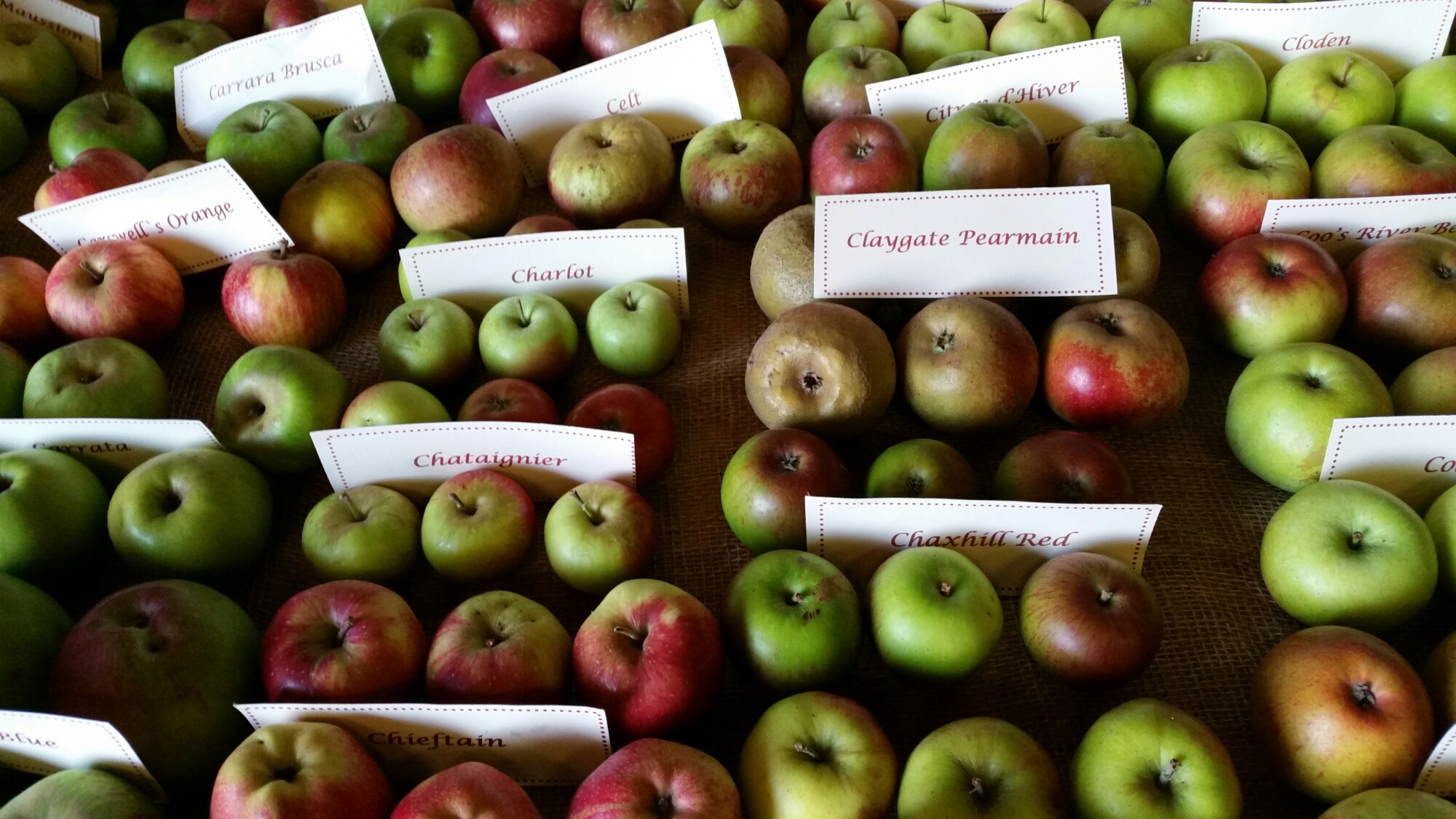 On the way back from Whitstable yesterday afternoon, we called in at Brogdale Farm, which is apple heaven. The headquarters of the National Fruit Collection and run by the University of Reading, it had a large barn full of every variety of apple displayed alphabetically:
