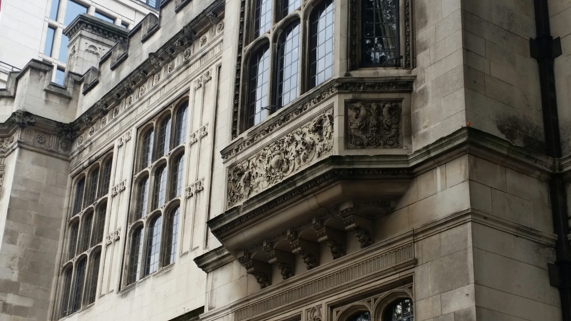 I had a fine thanksgiving lunch today in 2, Temple Place, an extraordarily grand building on the corner of Temple Place near the tube station. It was designed by John Loughborough Pearson and decorated internally by John Dibbledee Crace as the estate office for William Waldorf Astor, with a flat above so that his children would be safe from kidnapping. It’s in a style of opulent Tudorbethan more normal in Washington than London, with scenes from The Three Musketeers on the banisters and a frieze which includes pictures of Machiavelli and Pocahontas (but I didn’t like to spend lunch checking):