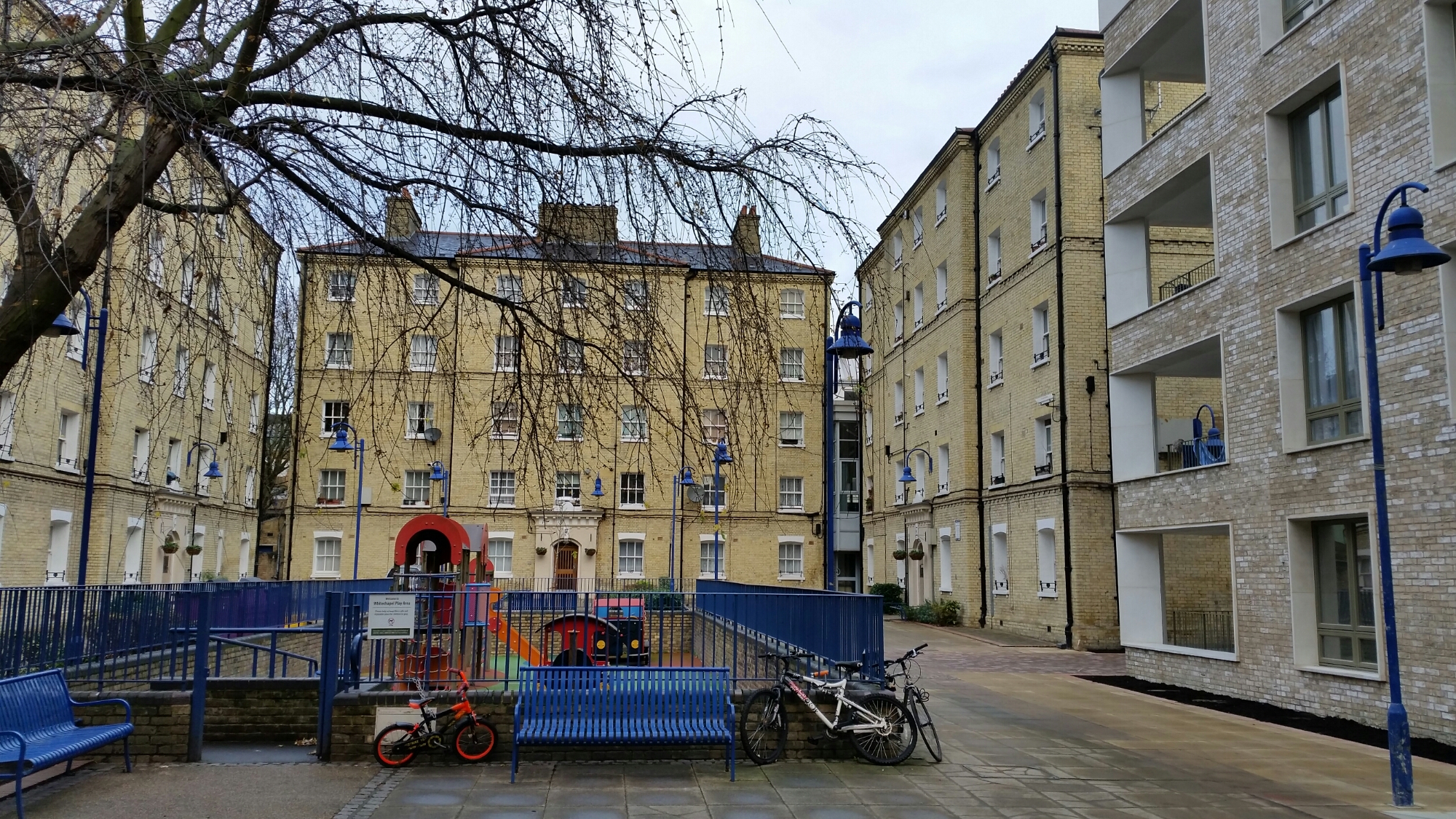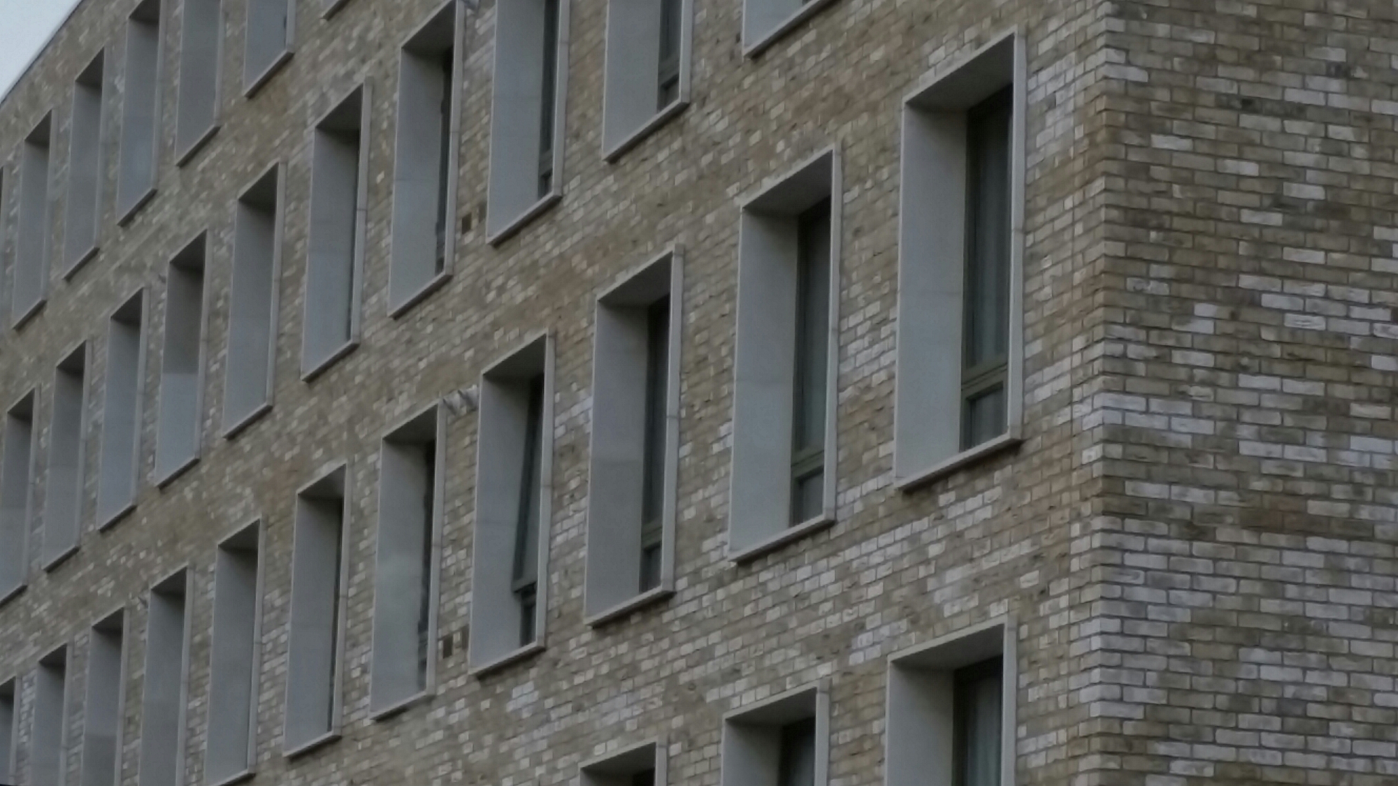 I went to see the new building which Niall McLaughlin has put up in amongst some classic Peabody buildings just short of the Tower of London on John Fisher Street (previously Glasshouse Street). The original estate consists of nine buildings, each one labelled according to a letter of the alphabet, designed by H.A. Darbishire and built in 1880. Niall McLaughlin has added a thin, free-standing block, in appropriately austere pale brick, not aping the surroundings, but in sympathy with them:-