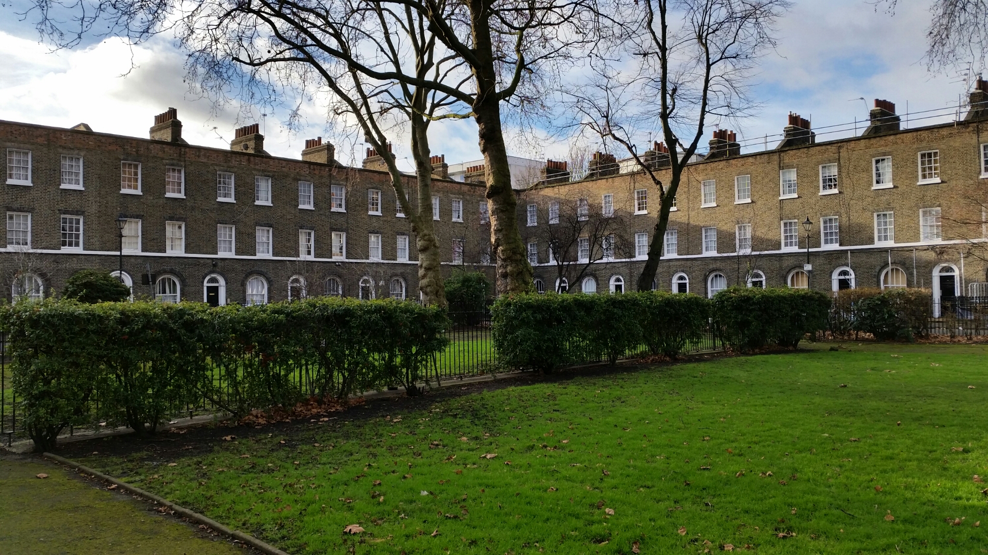 I often get in a muddle as to which of the east end squares is which and which was the model for EastEnders. Arbour Square is just north of Commercial Road, laid out in 1819 and built as a consequence of Commercial Road being driven through the neighbourhood to give direct access to the docks. Two sides of the square retain terrace houses: