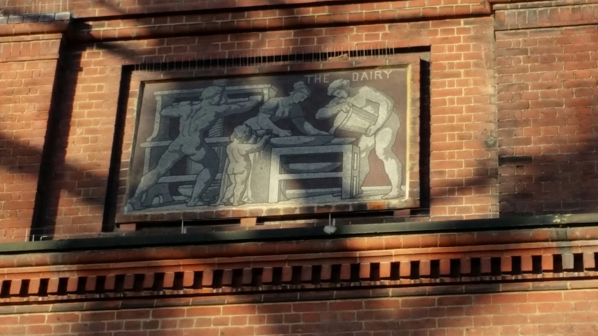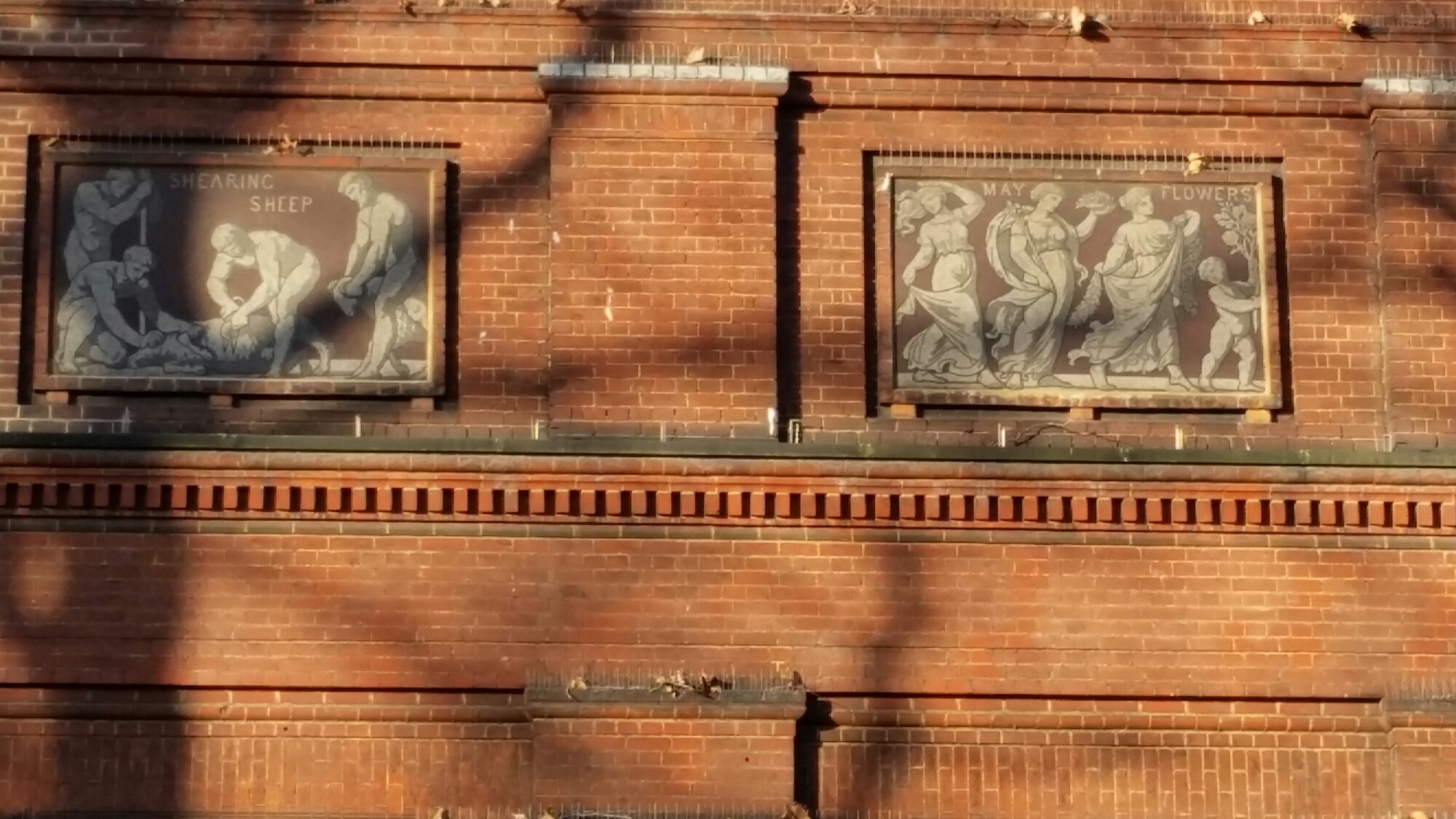 I had never noticed that around the side of the museum, there is a series of mosaic panels showing the arts and industries, which were executed by the students of the National Art Training Schools under the supervision of Frank Moody:-