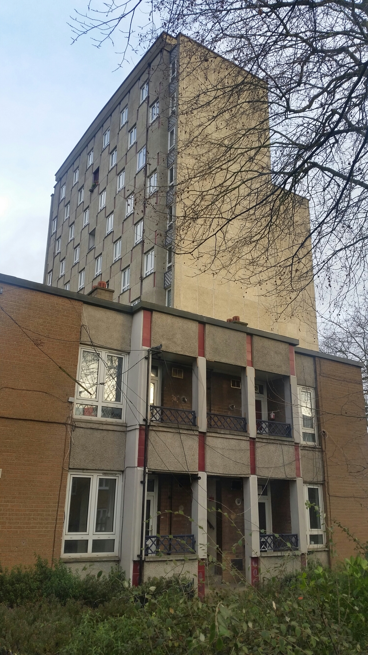 I was reminded by Otto (or maybe it was castigated for my ignorance) that there is another estate by Lubetkin just south of Victoria Park. Indeed, there is, with some of the same hallmarks as the nearby Cranbrook Estate, which is visible along the Hertford Union canal, but Lakeview has distinctive side pavilions which look as if they derive from rural Slovakia:-