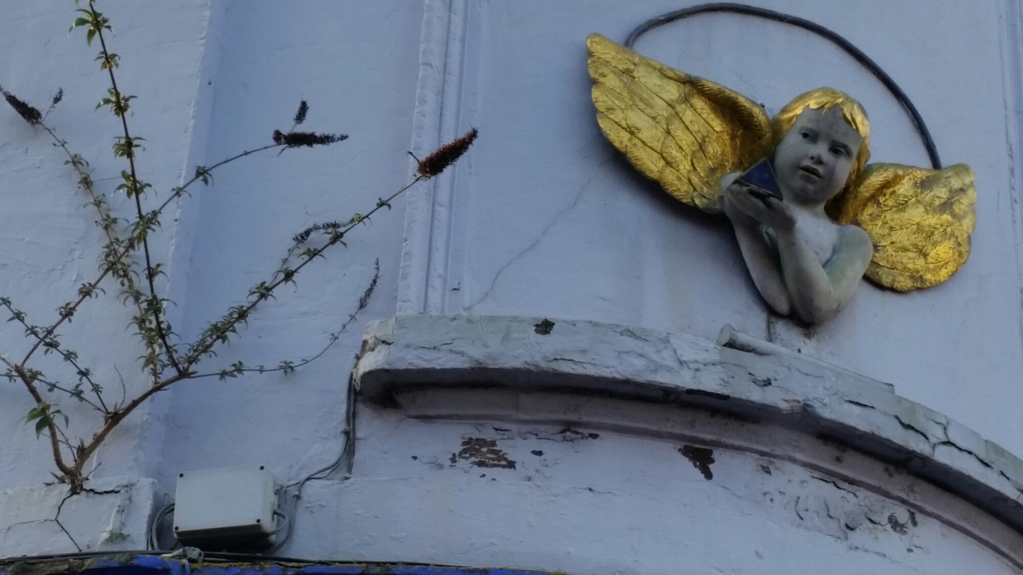 I was intrigued by the angel and blue columns on the house at the corner of Three Colt Street:-