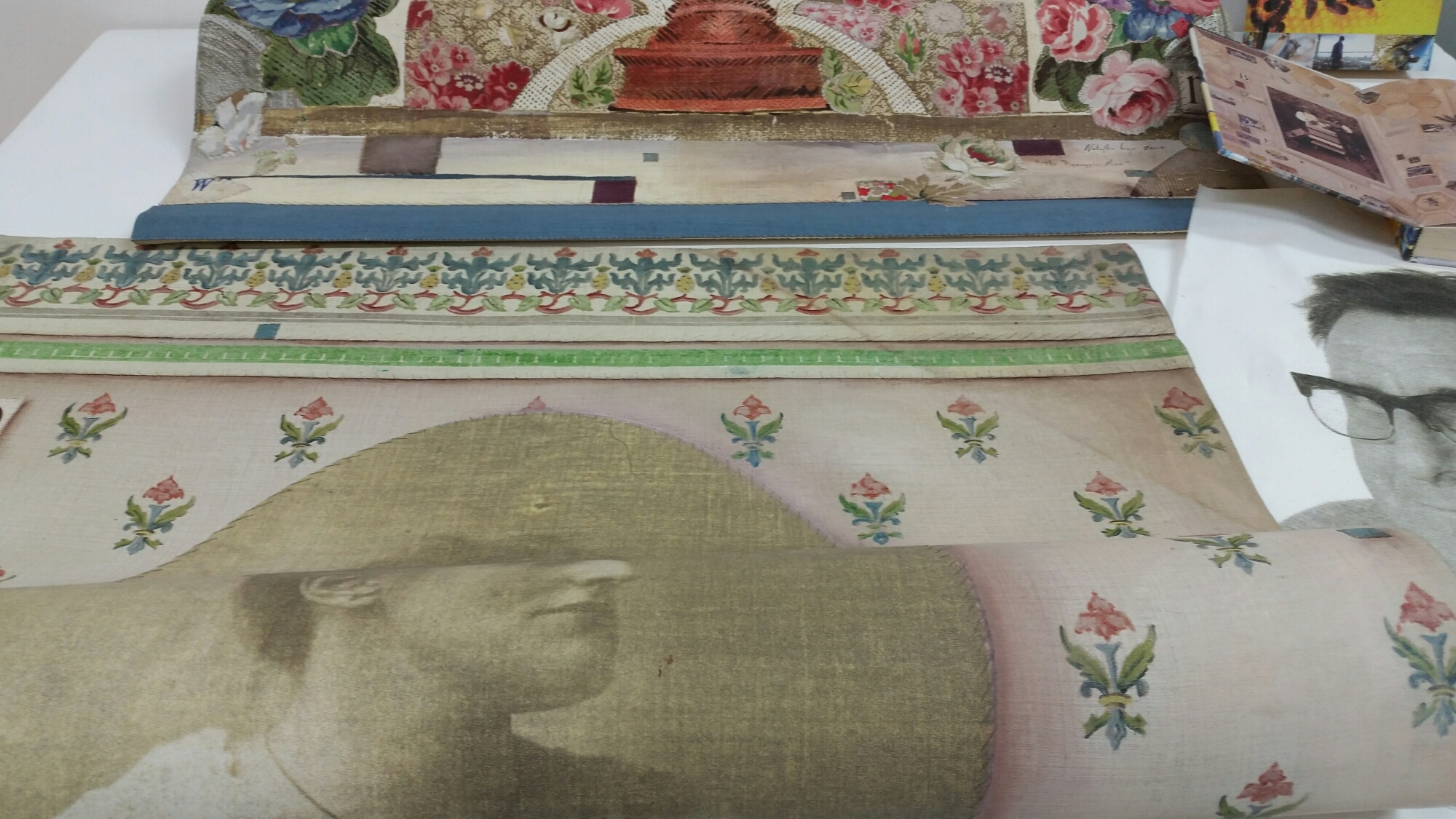 I had in my diary that Natasha Kerr had an open studio today beside the Regent’s Canal near Broadway Market (G6 Northside Studios, 16-29 Andrews Road E8 4QF).   I like her work.   It’s quiet and thoughtful, based on autobiography and the memory of her refugee family and its dysfunctionality, using patchwork, collage, painting and quiltwork (she calls them textile pieces):-