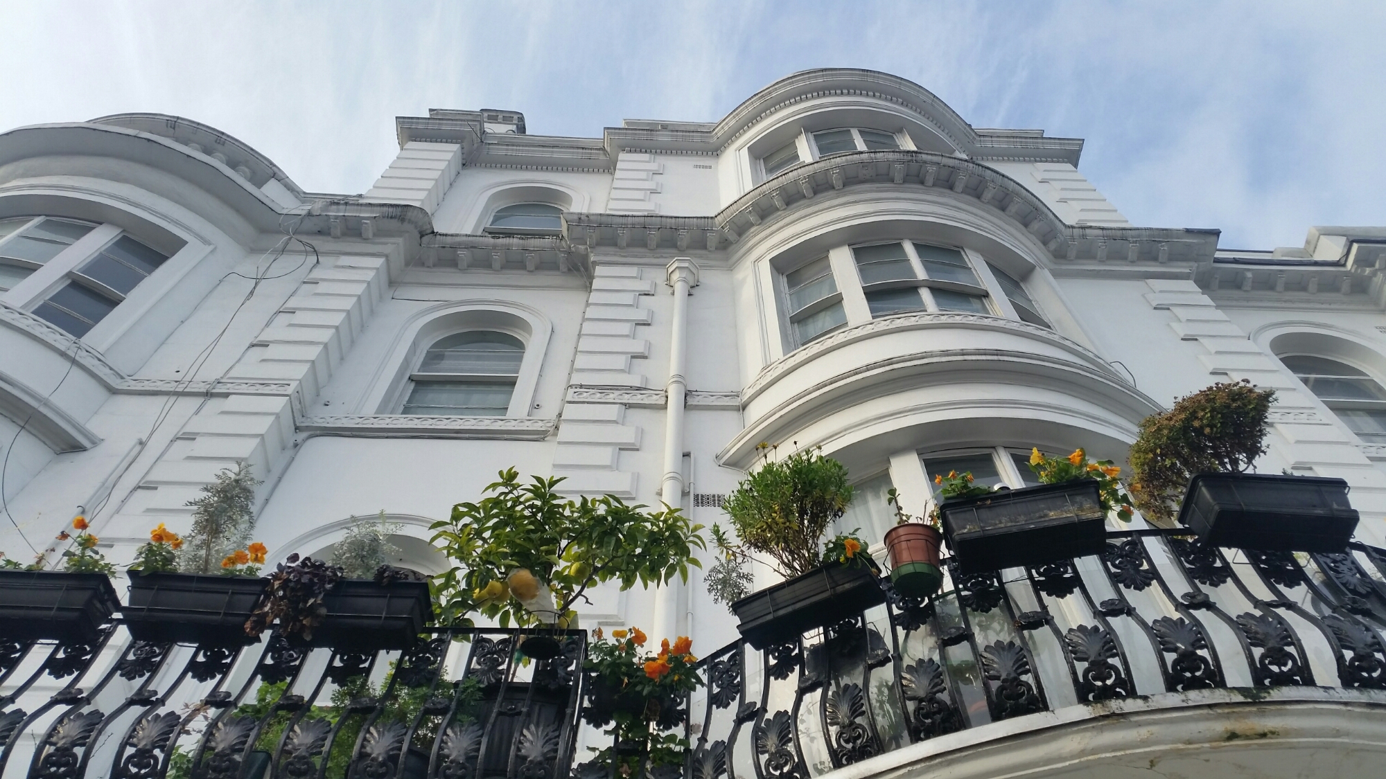 The best I can do today is show photographs of Gloucester Terrace, traffic-ridden and shabby, still the land of cheap boarding houses and peeling paint which, half charmingly, surrounds Paddington Station. Built by William Kingdom between 1843 and 1852, it’s got one house which I show below and is oddly is higher than the others:-