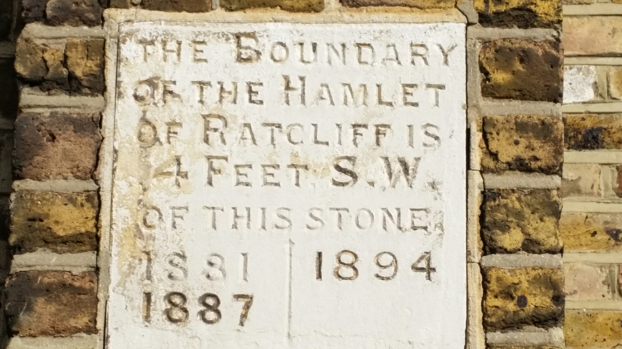 I have often wondered where Ratcliff is, apart from Ratcliff Highway, and this morning spotted a sign set into the wall on Salmon Lane (once Sermon Lane) by the junction to Barnes Street, which demarcates the parish boundary;-