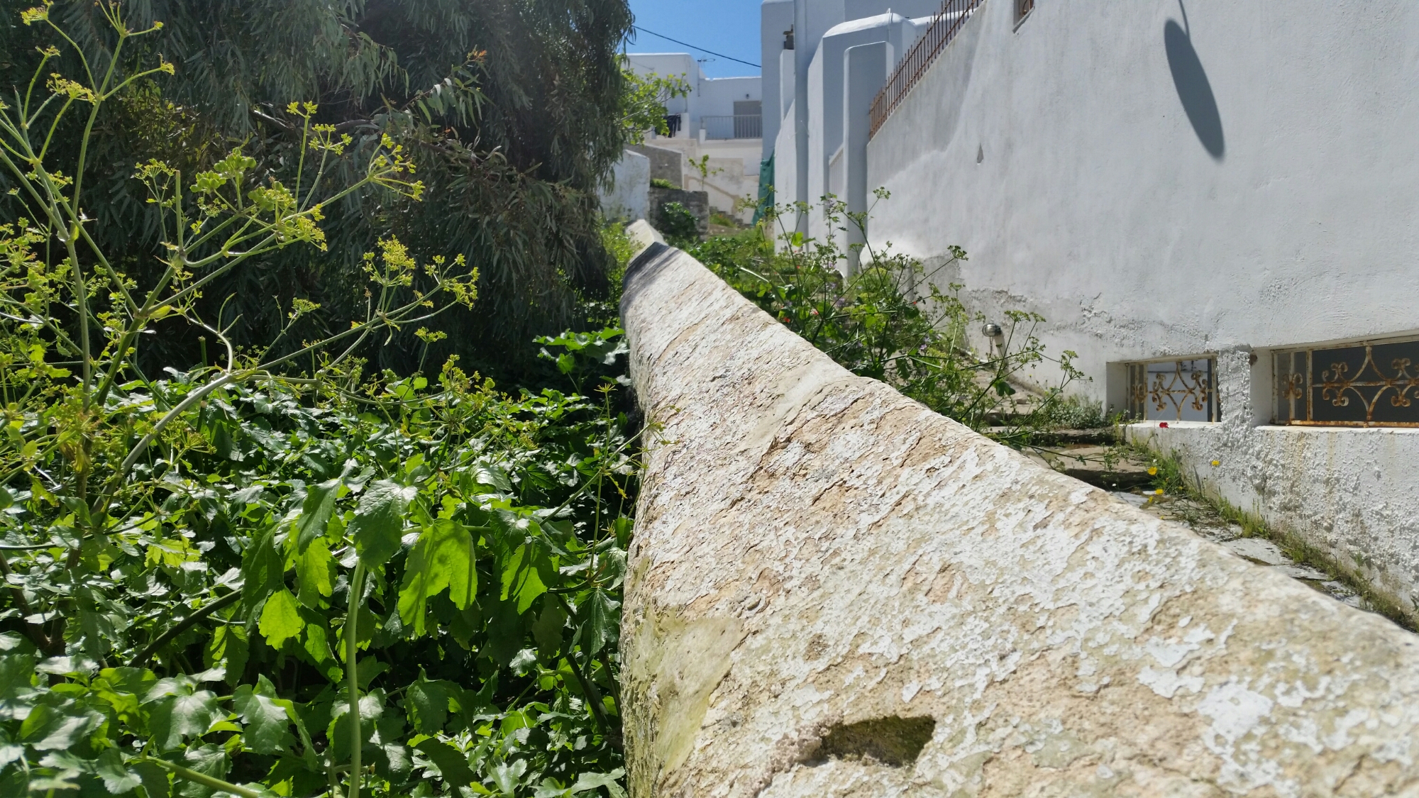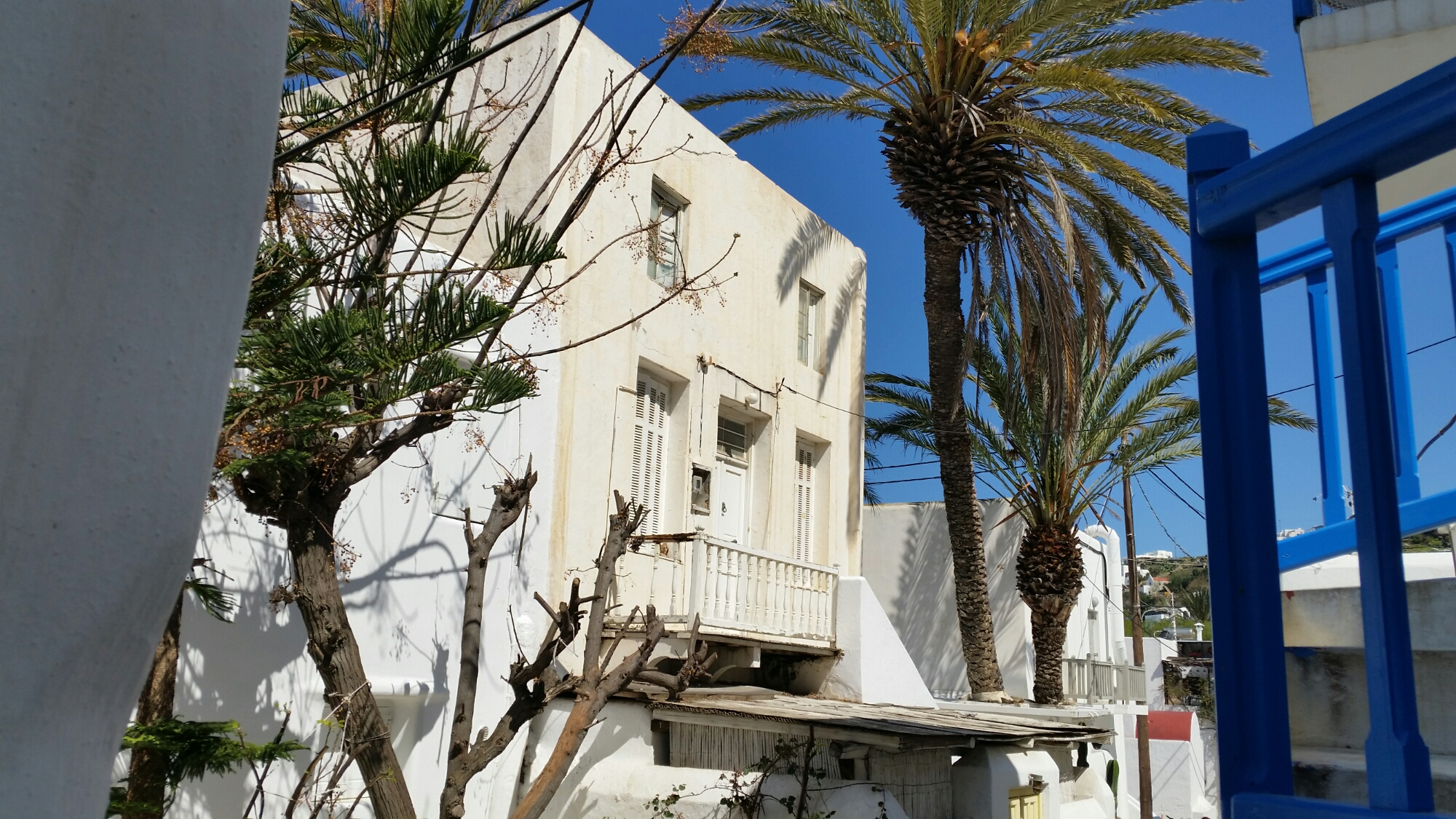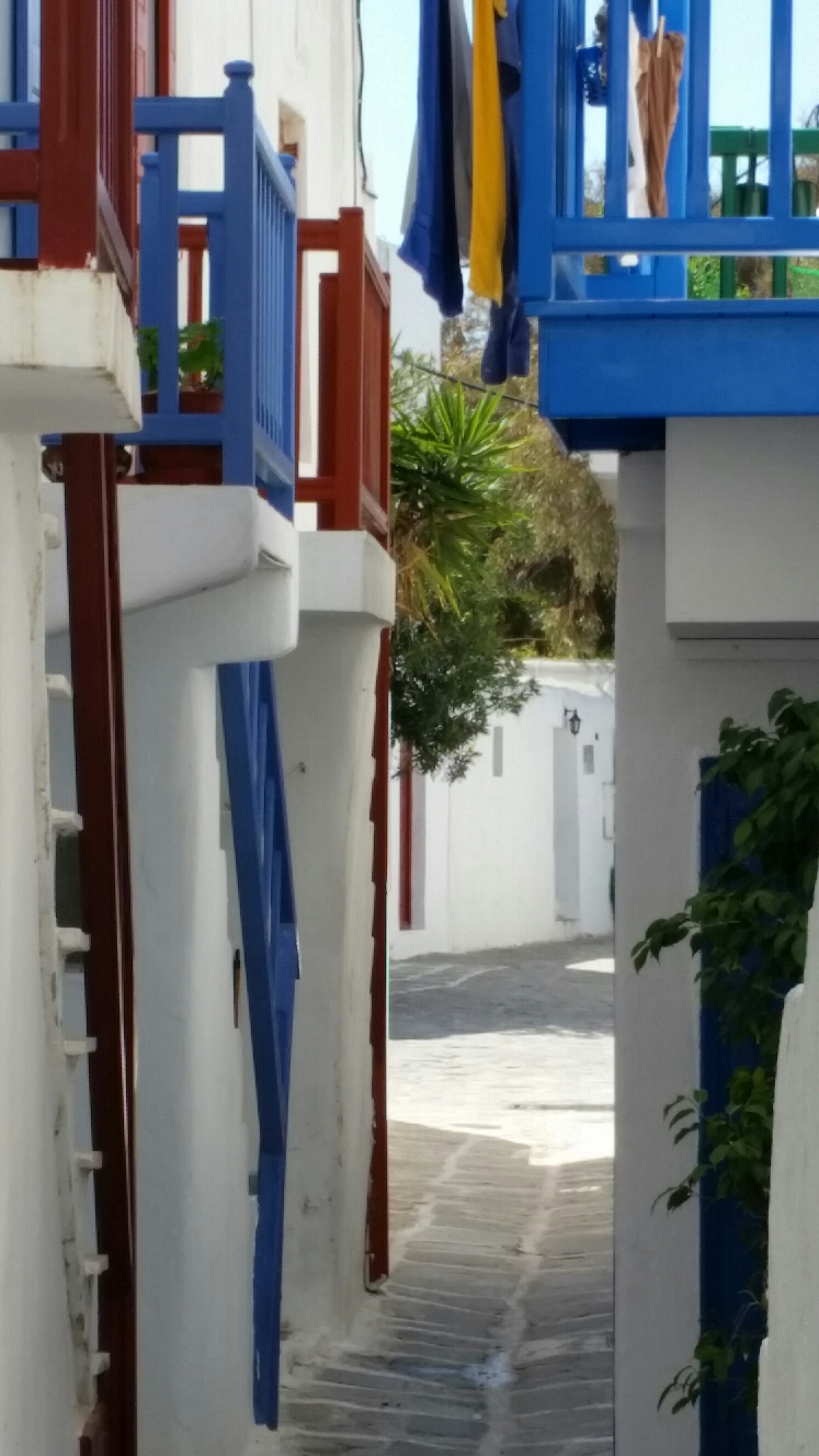 I walked through the backstreets of Chora on Easter morning (Greek Easter) which were empty but for a few lone Japanese tourists and a family roasting a suckling pig – or maybe it was paschal lamb – in the street. It was uncannily quiet after the Easter parade with candles sent from Jerusalem and there was a blue blue sky:-