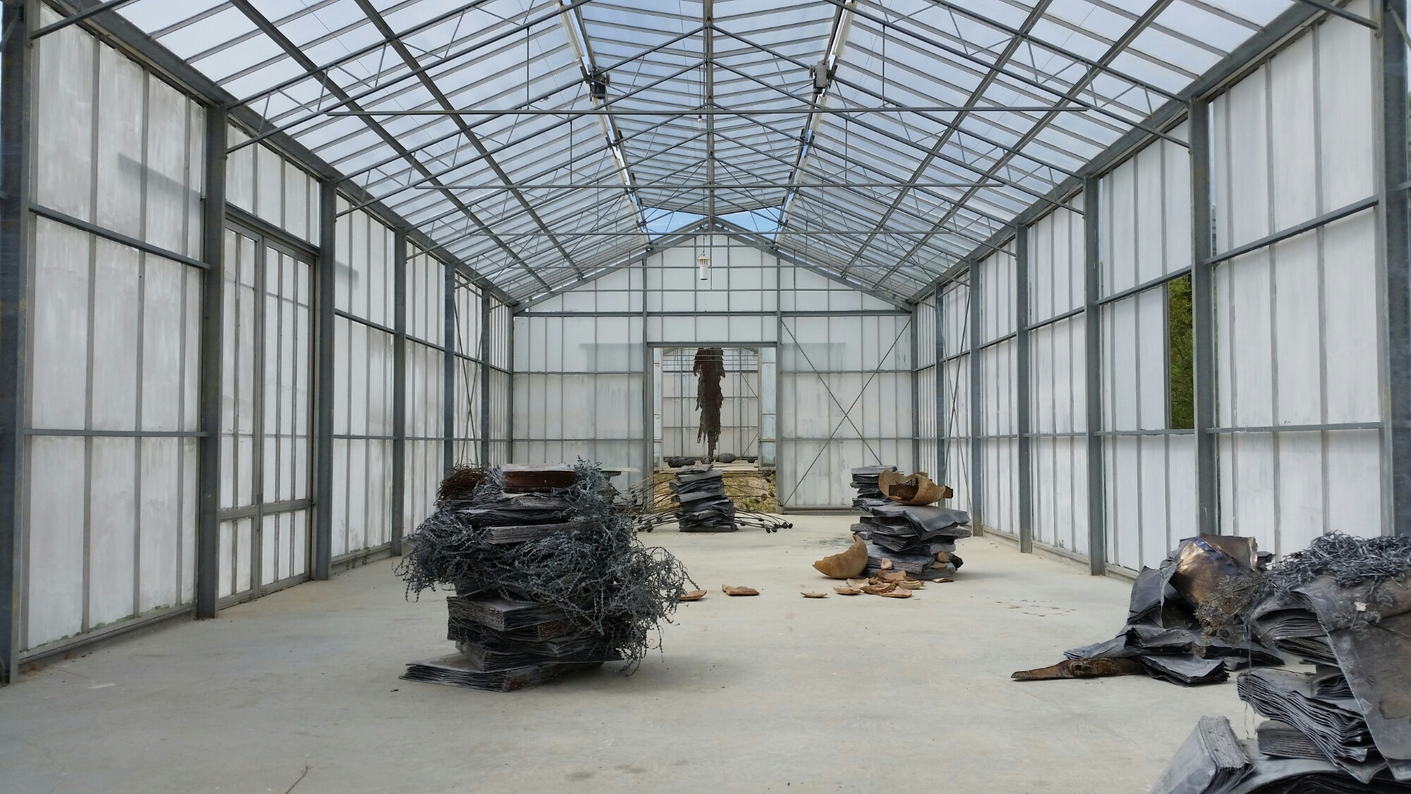 It was spectacularly hot and sultry as we walked round the grounds of La Ribaute, the silk mill where Anselm Kiefer lived and worked for a period of fifteen years before moving to the warehouse of La Samaritaine in the outskirts of Paris. I had forgotten the intensity of its classicism, the names of gods defining the experience of the ruins. We walked further and saw more than on our previous visit last summer, conducted through the fields and installations by the silent gardien as it got hotter and hotter. I had not registered the intensity of the experience of the natural environment, the ants invading the lead, the orchids and herons, the artificial lakes, the birdsong. It is reminiscent of an eighteenth-century landscape park, like Stourhead or Stowe, the natural environment elaborated to balance the artworks placed in a circuit to be experienced in sequence.