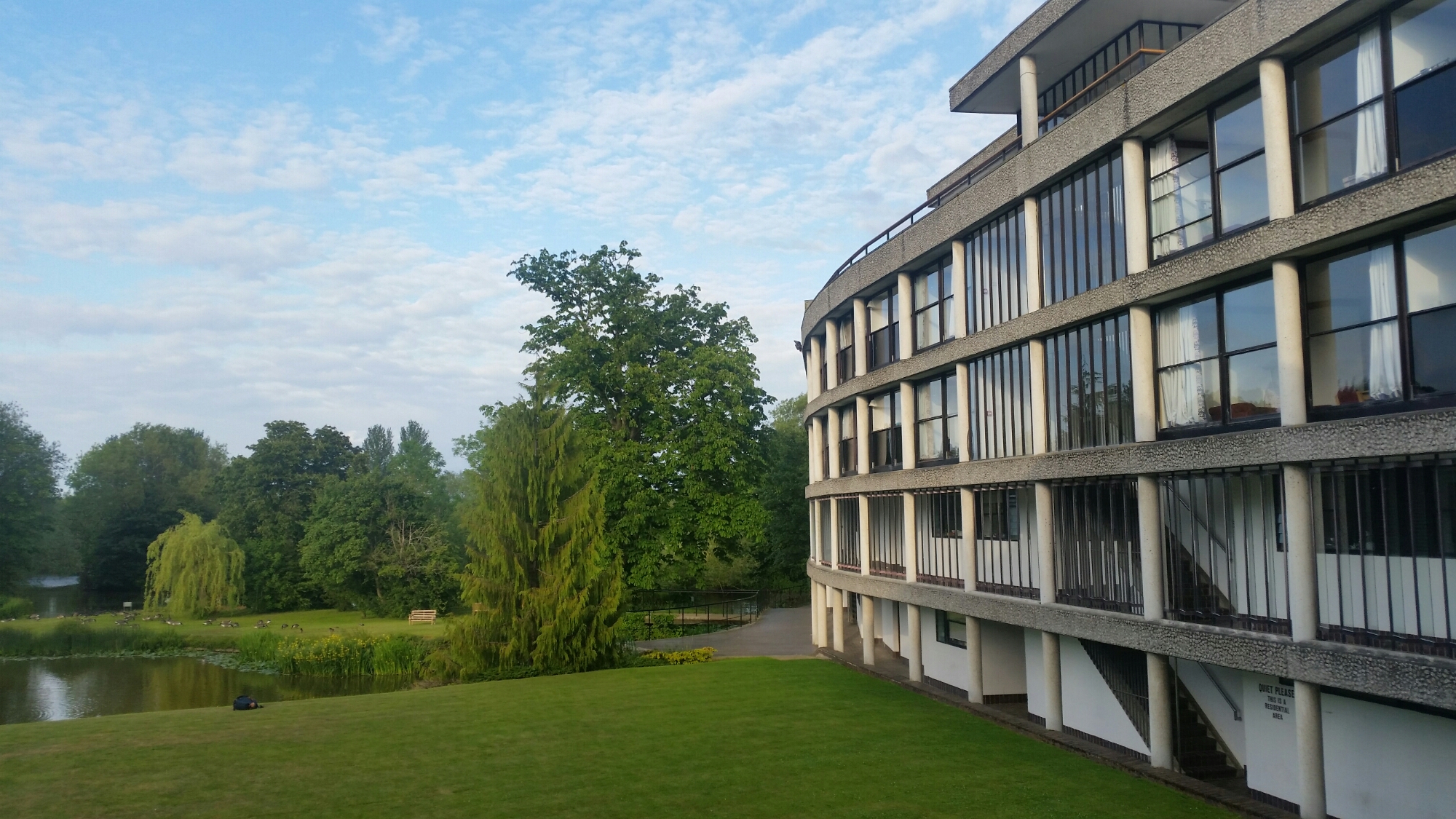 I had never actually been to Wolfson College which must have been under construction when I lived outside Oxford. It was designed by Powell and Moya in the late 1960s, when they were also doing Blue Boar Quad for Christ Church after the success of their design for Christ Church Picture Gallery. I was told to admire the view of the Cherwell which I did:-