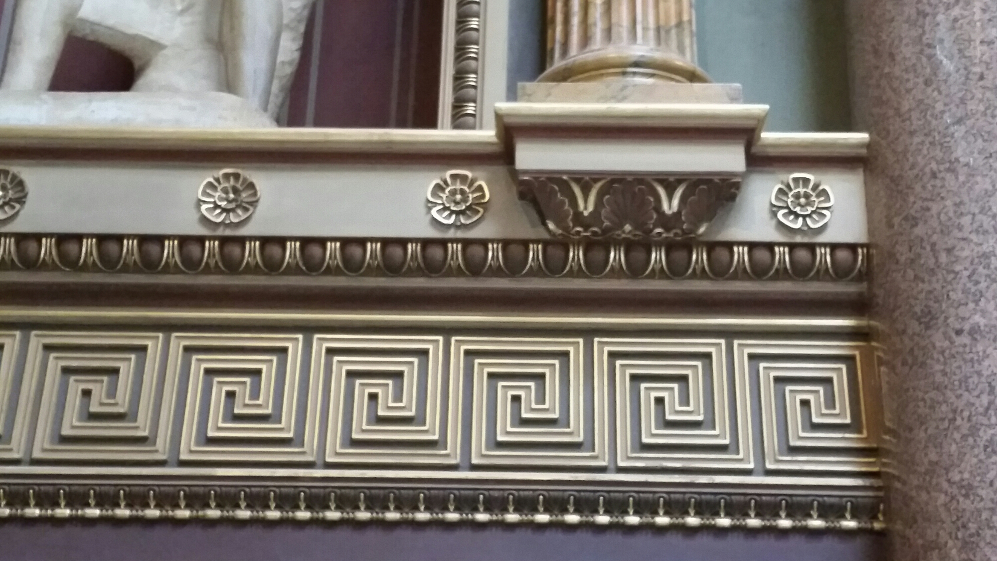 We then went in to the great entrance hall which used to look rather neglected, but now is in good order in full neoclassical opulence, mainly done by C.R. Cockerell who took over from George Basevi and completed in the 1870s by E.M.Barry:-
