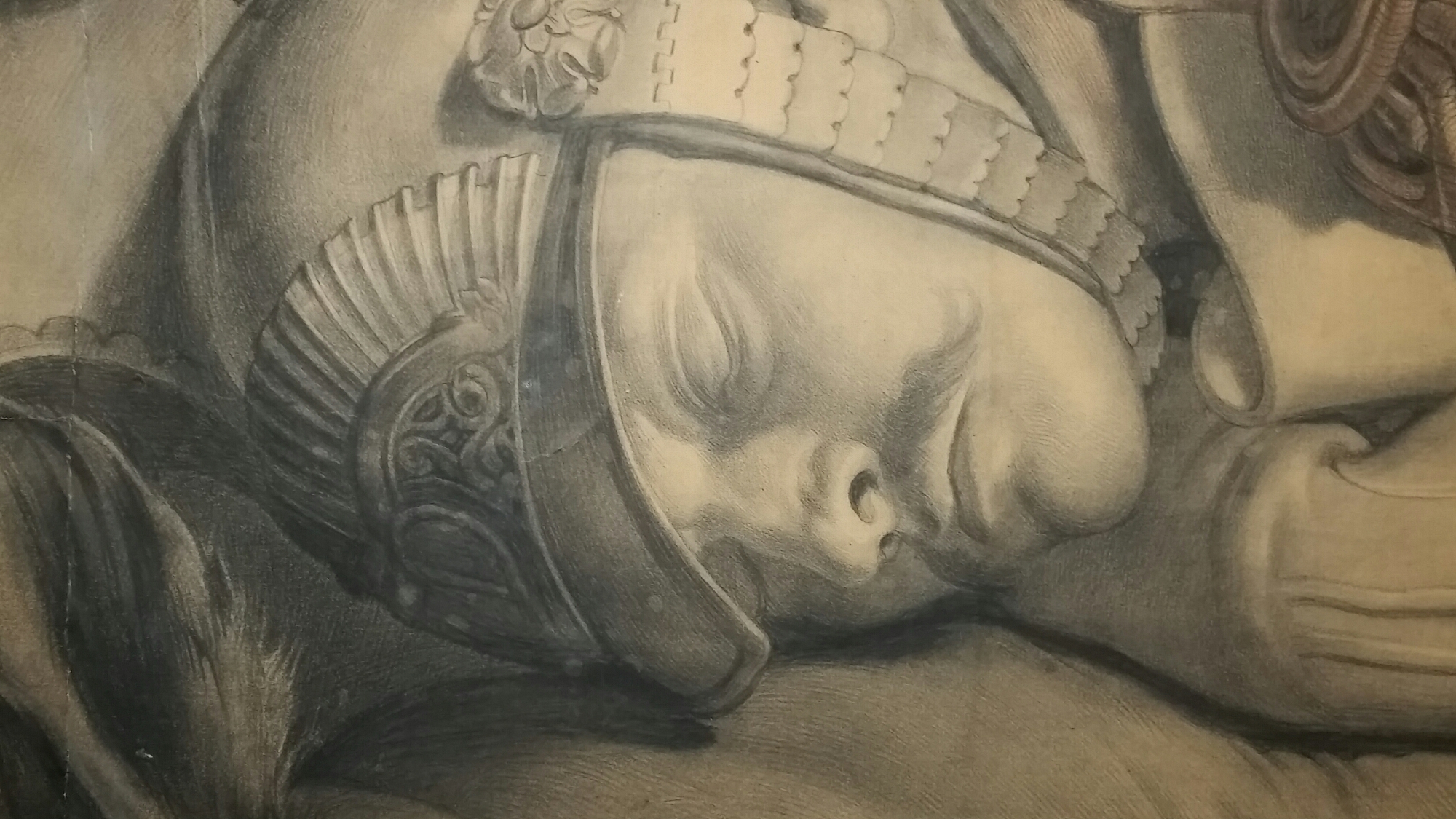 Today was my first chance to see Daniel Maclise’s great Waterloo Cartoon, which has been restored over the course of the last year, was shown at the Royal Armouries during the summer, and now goes on display in the RA’s Large Weston Room for the autumn, as our way of marking the bicentenary of the Battle. It’s quite an amazing work, on a vast scale, ostensibly celebratory as it shows the moment when Wellington greets Field Marshal von Blücher outside what had been Napoleon’s headquarters, but also full of the travails of war, the fallen soldiers. In all, a celebration of grim heroism.
