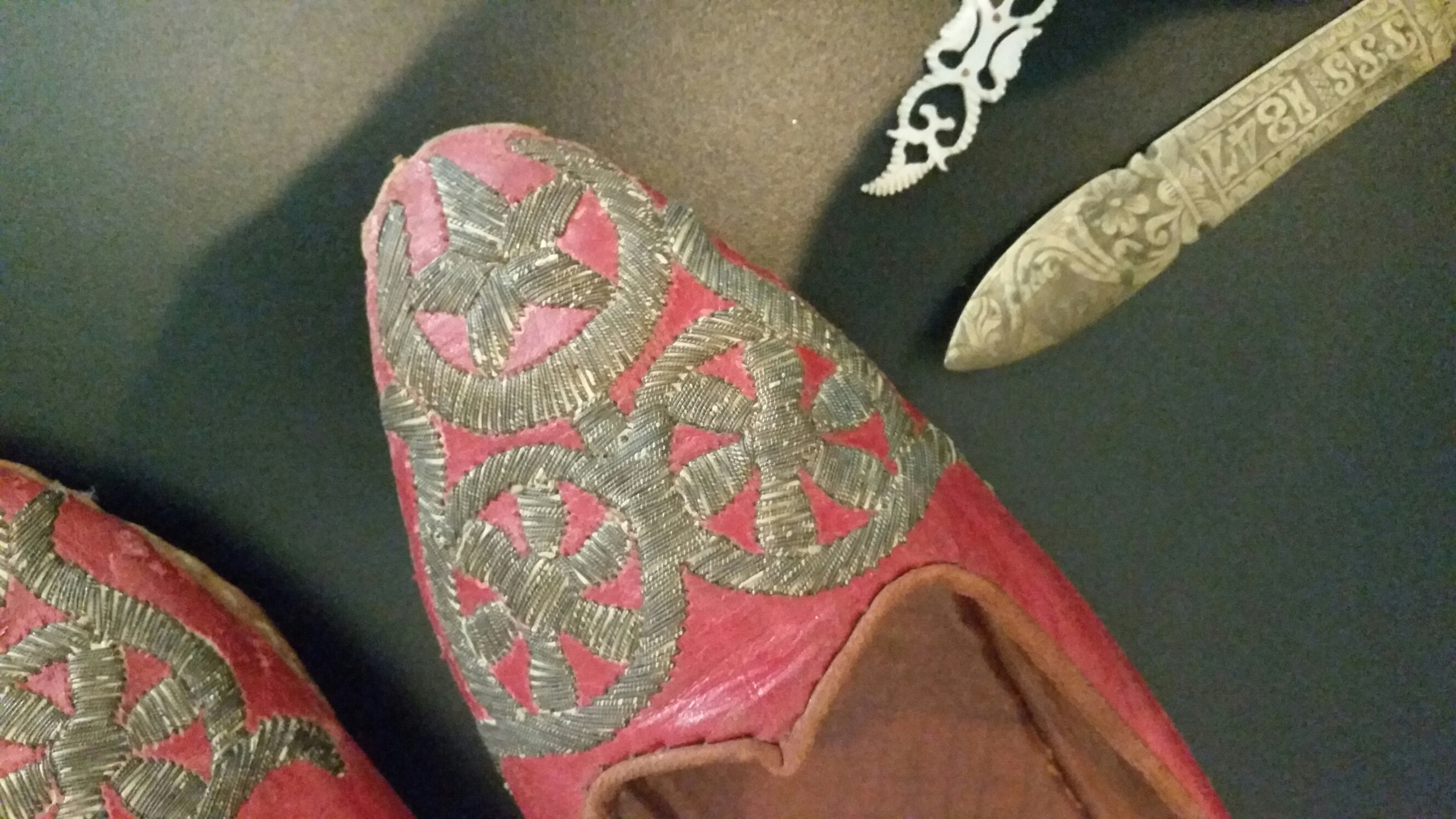 Some embroidered slippers which he bought on his trip to Iceland:-