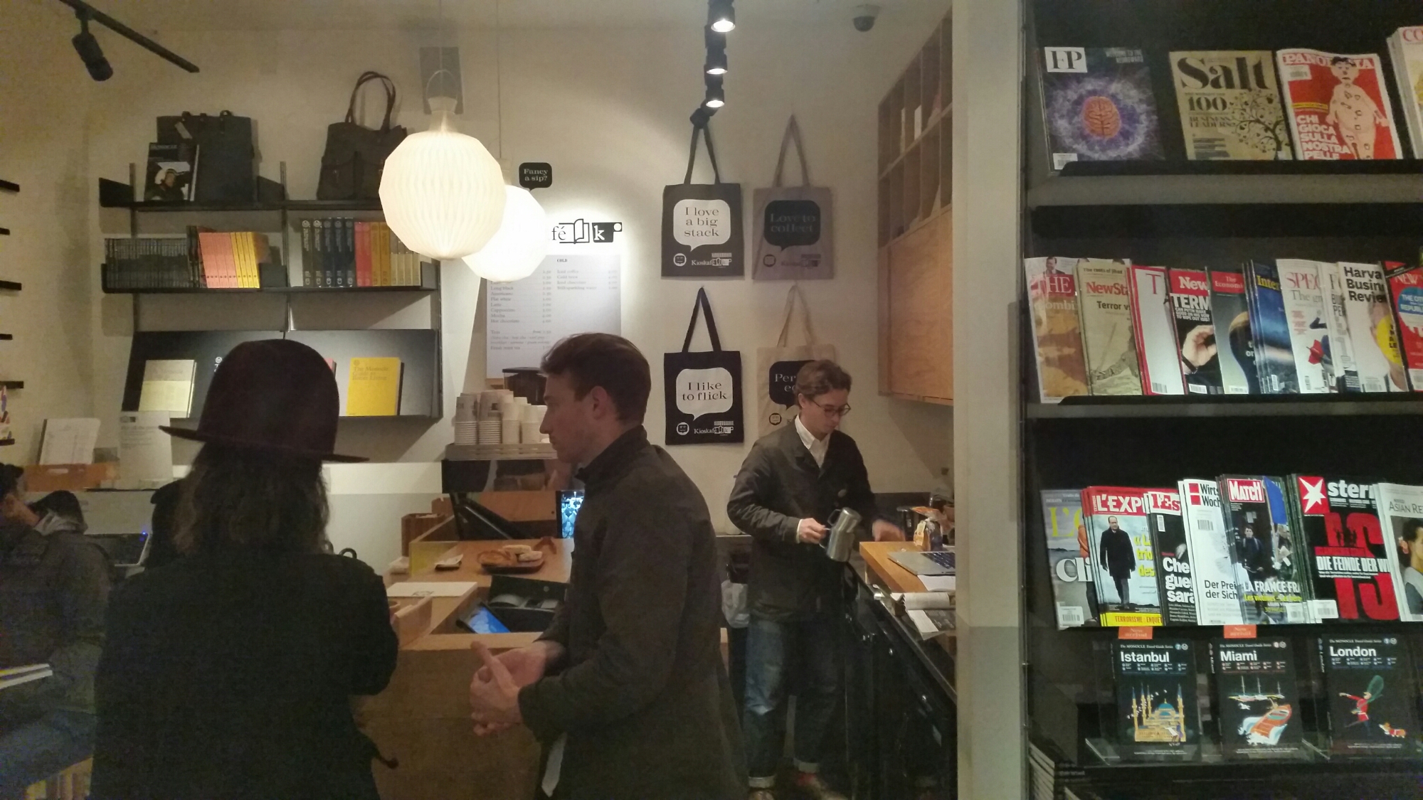 Arriving in Paddington this afternoon, I took the opportunity of calling in at the new Kioskafé in Norfolk Place near Paddington as I thought it could be a possible precedent for what we might do in Burlington Gardens. It’s a version of the Monocle Café in Chiltern Street, a café-cum-newsstand selling a wide variety of international newspapers and magazines, which are perhaps just staffage for the sale of tea and coffee, but giving it a European atmosphere:-