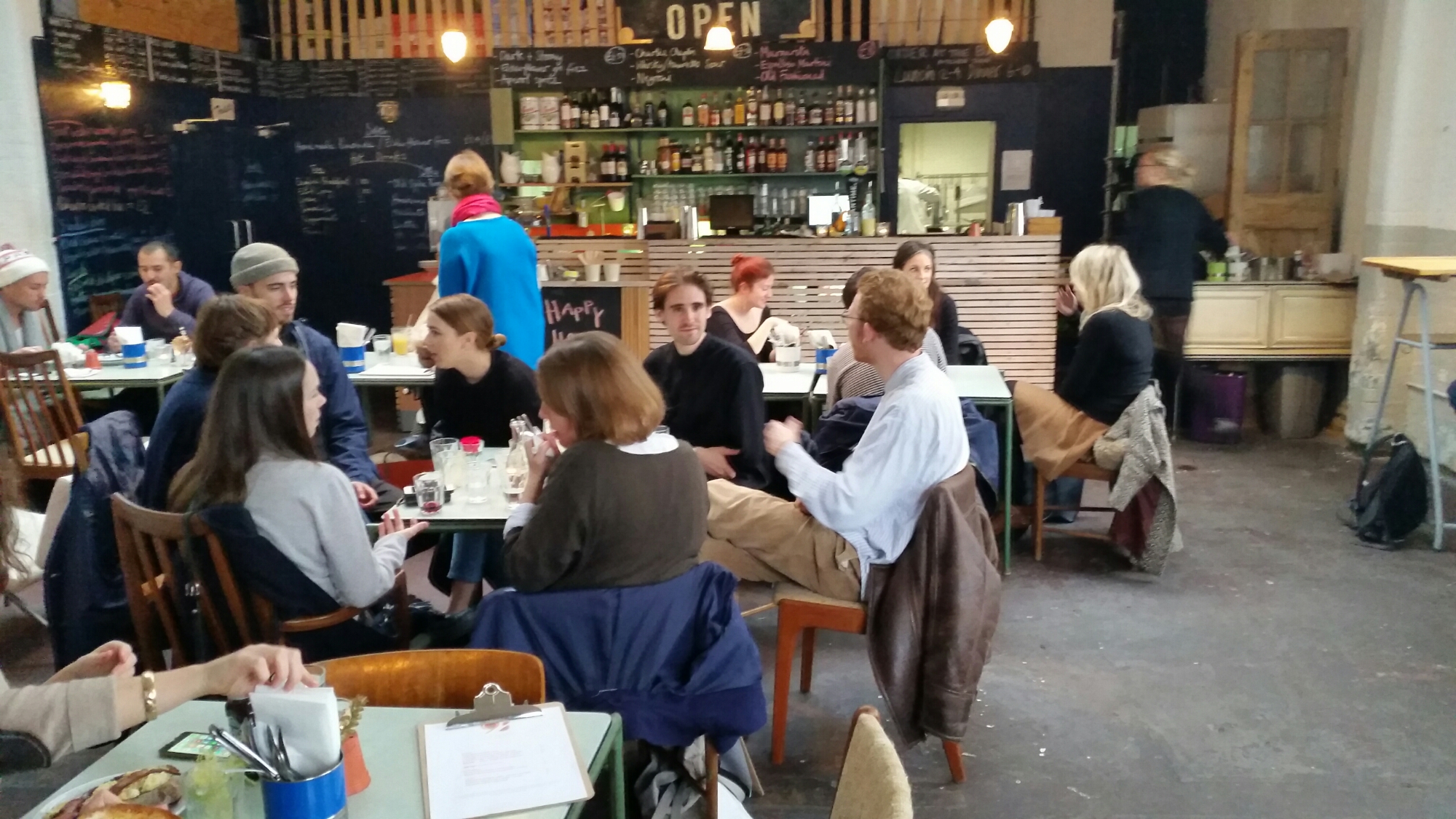 We set off to darkest south London to go to a Christmas sale of ceramics at the Kiln Room down a dark alleyway off Peckham Rye. We discovered a wild and wonderful bar called The Nines just behind it where we were able to have a brunch of fried eggs and harissa, scrambled eggs and smoked salmon, pancakes and pale ale:-
