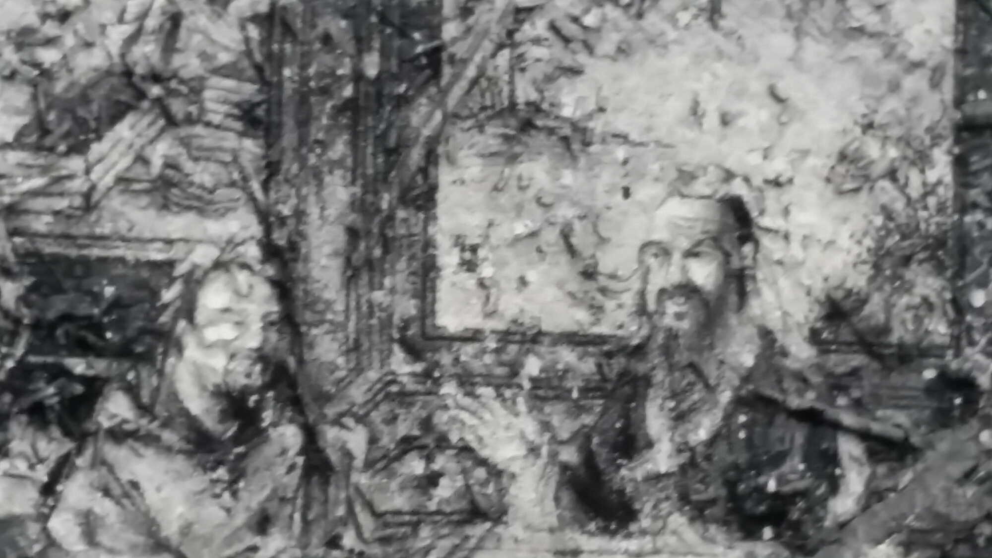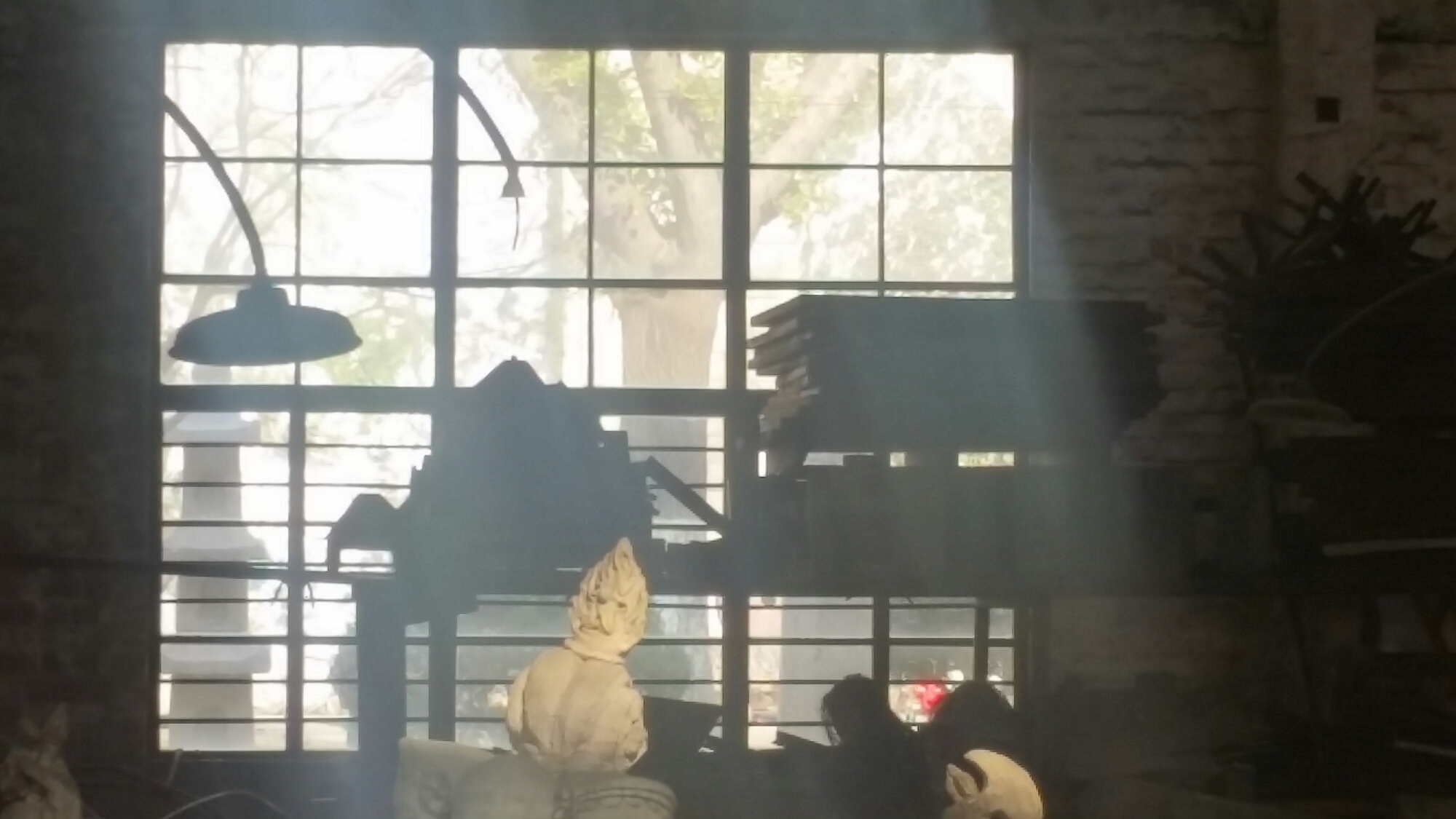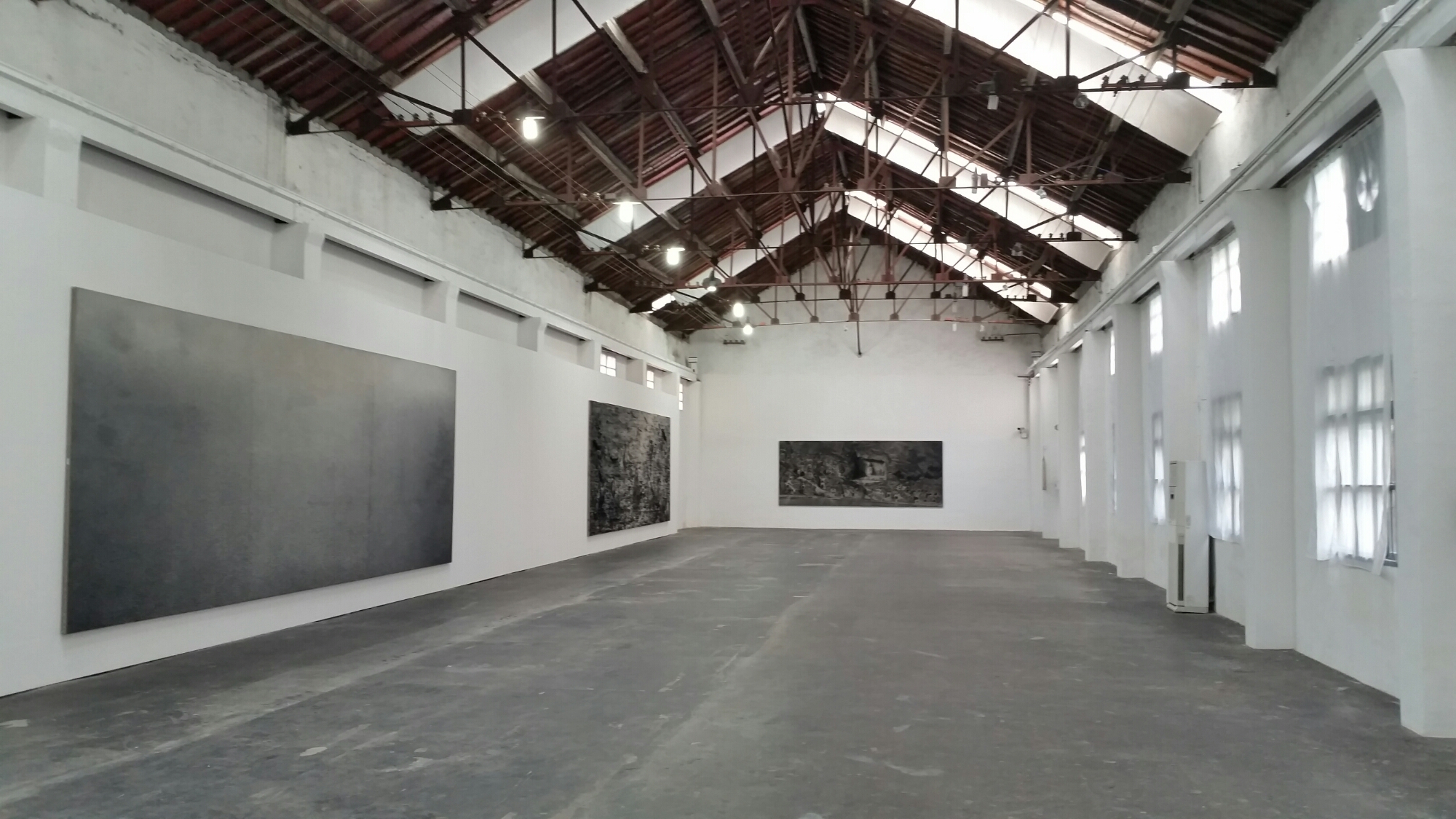 We started in a huge empty studio full of four grand and sacred ash paintings:-