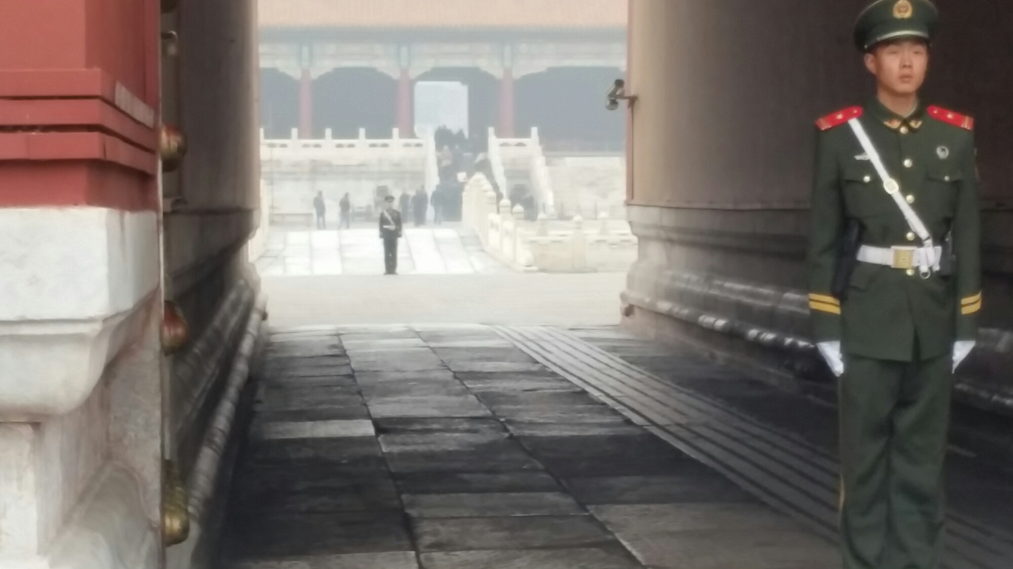 Last stop Beijing.   We’ve arrived in the deep white, miasmic haze of the polluted capital city.   Our guide introduced the pleasures of Beijing by telling us about the poor state of the ladies’ lavatories and the likelihood of being scalped on Tiananmen Square.