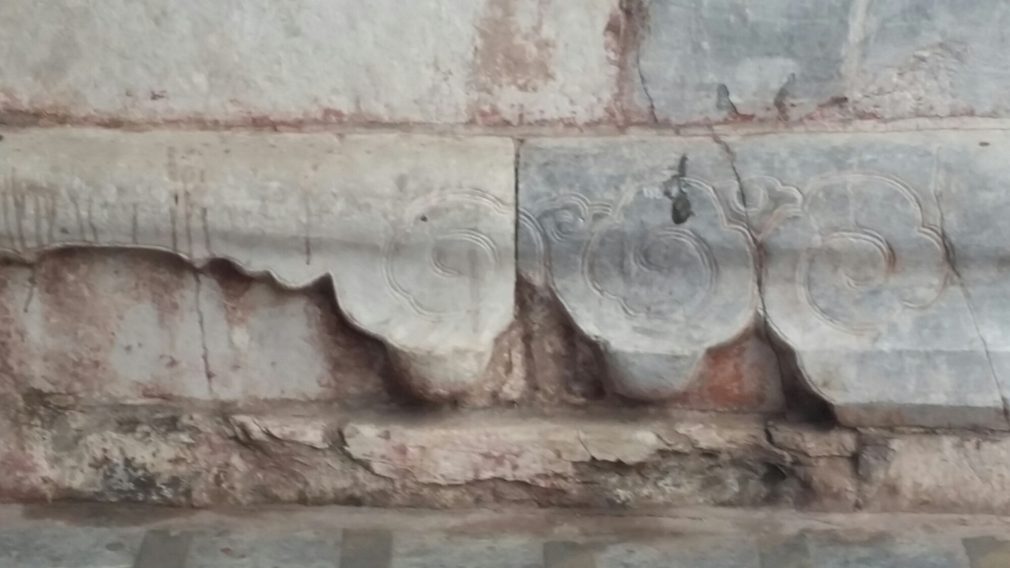 And the courtyard beyond, where the paint had peeled and the surfaces were less restored:-