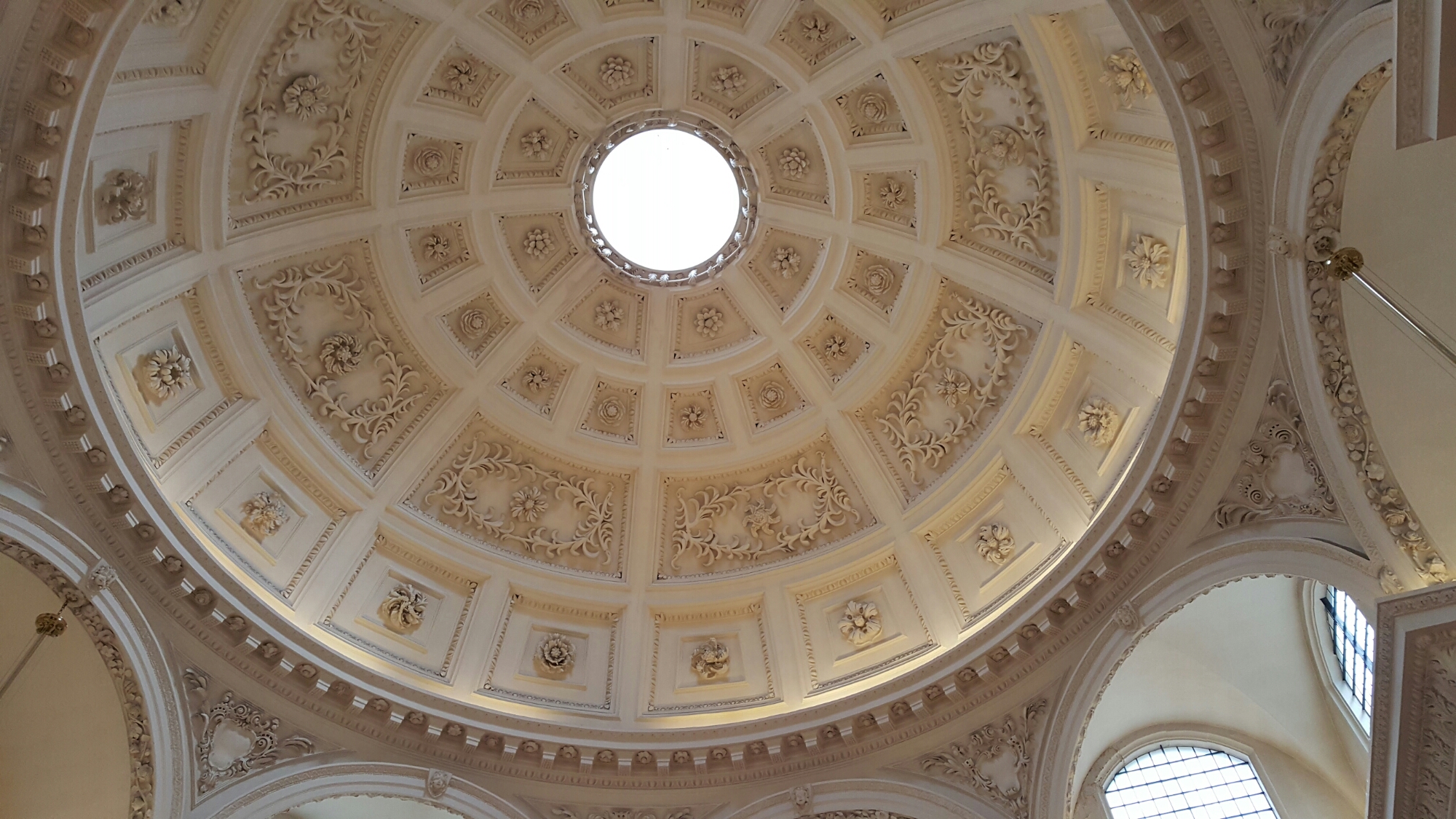 I also looked in on St. Stephen Walbrook, a curiously anonymous entrance for one of the largest and grandest of Wren’s City Churches, originally crammed in next to the old Stocks Market:-
