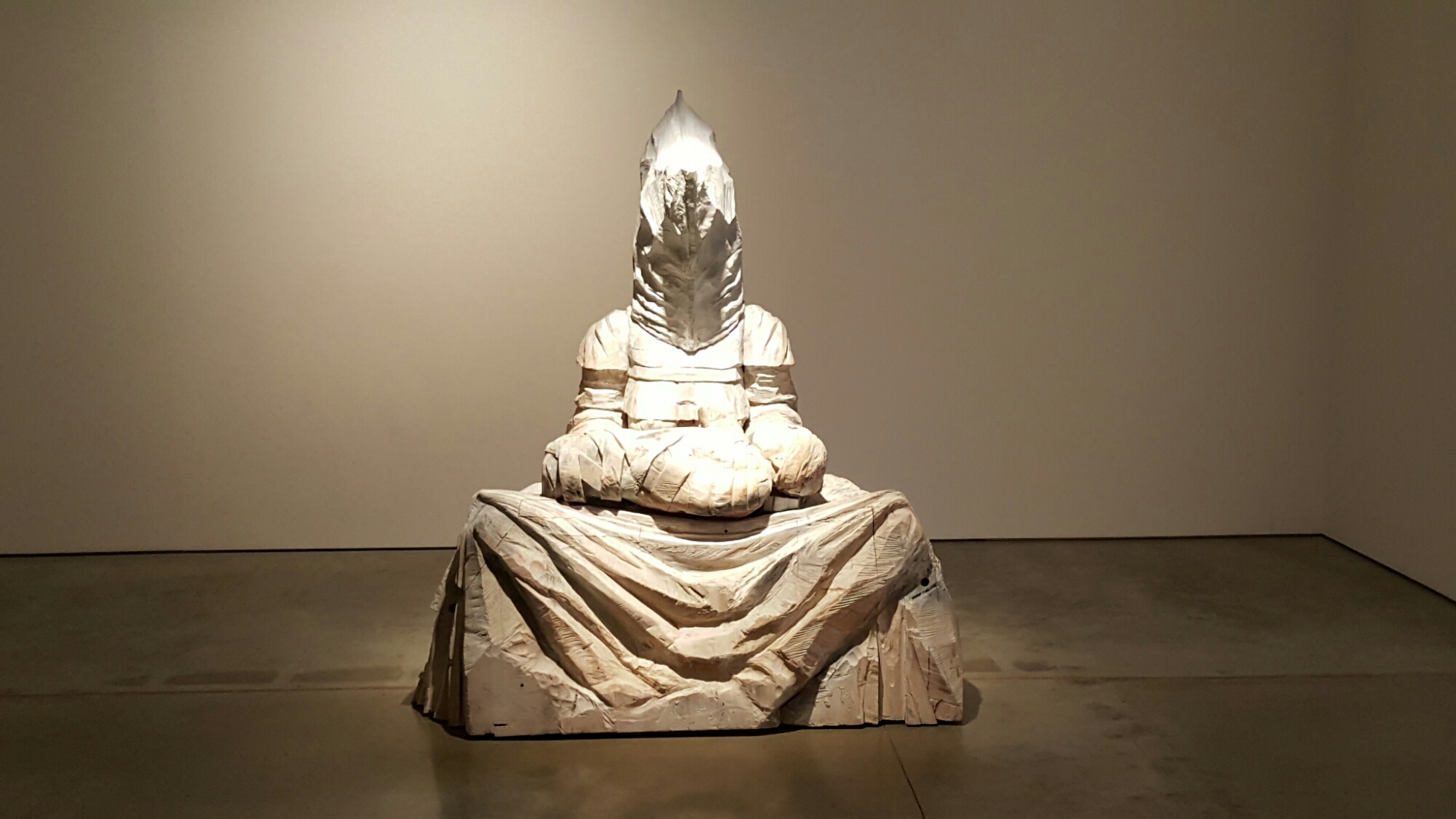 I wanted to see Michael Sandle’s exhibition at Flowers East, as I am a long-standing admirer of his work, having tried – and failed – to get him to undertake a commission for the NPG (the Trustees turned down a proposal that Michael should do a bust of W.G Sebald on the grounds that Sebald was insufficiently British). Much of the work is from the 1980s, dark and monumental, and now wildly and magnificently unfashionable. Particularly strong is his limewood carving Iraq – The Sound of Your Silence (2009) which was shown at the Summer Exhibition:-