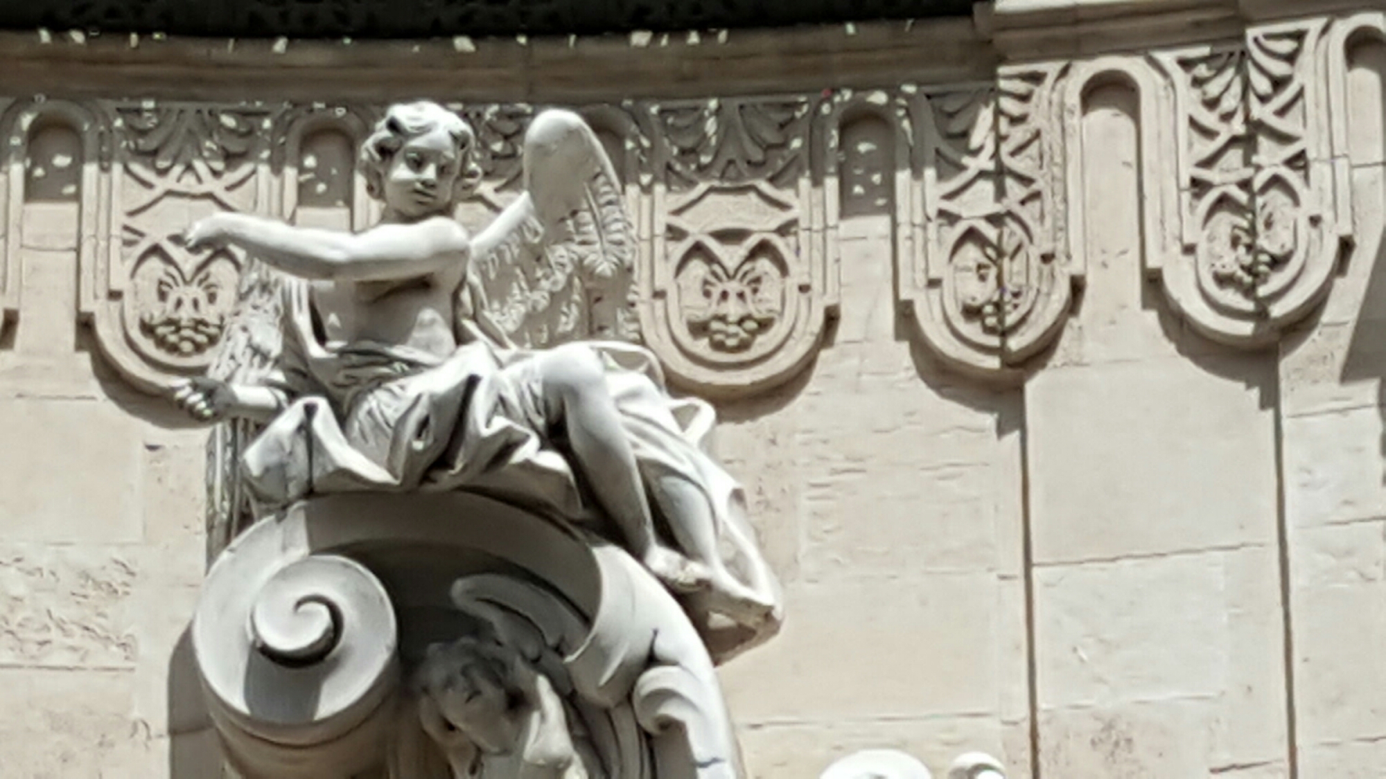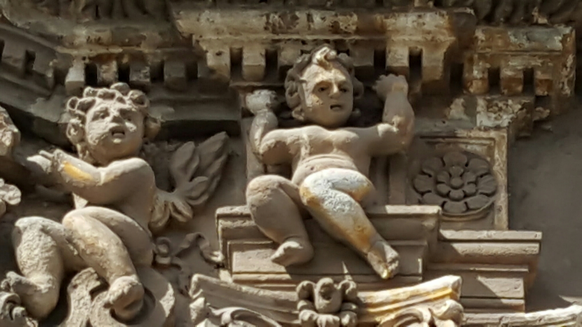 Immediately opposite is S. Giuliano by Vaccarini with playful metalwork angels on the gates:-