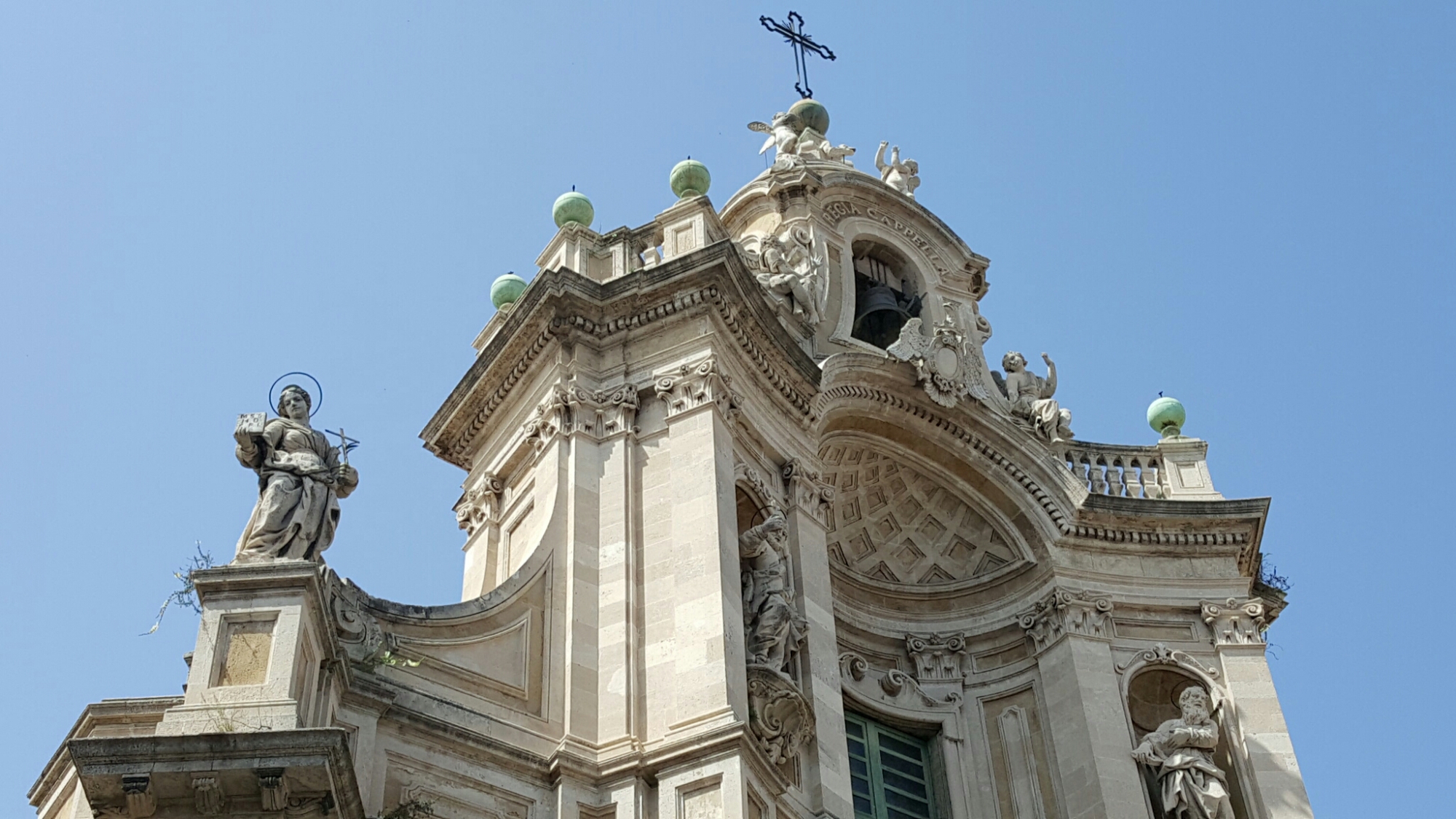 The Cathedral is dedicated to S. Agata.   So is the adjacent Chiesa della Badia di Sant’ Agata, also by Vaccarini:-