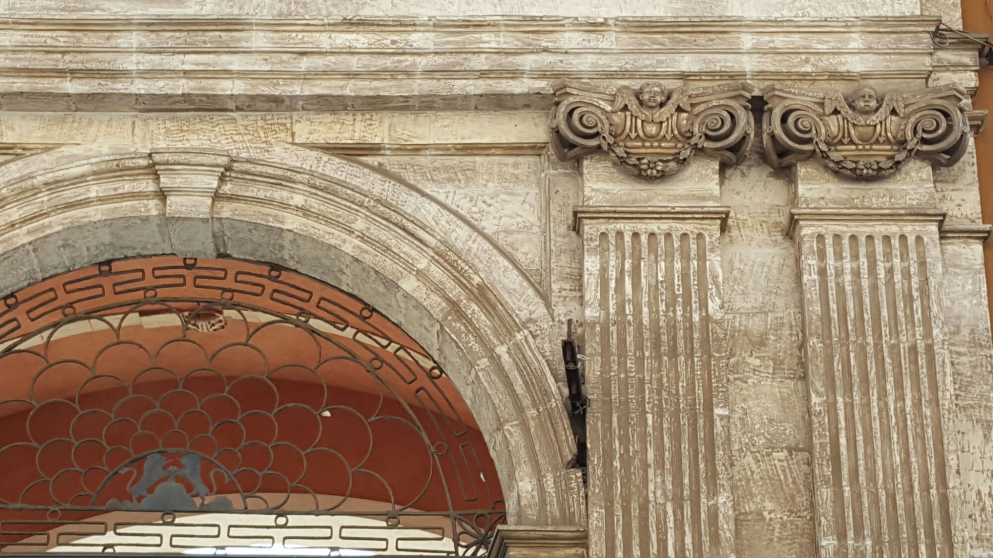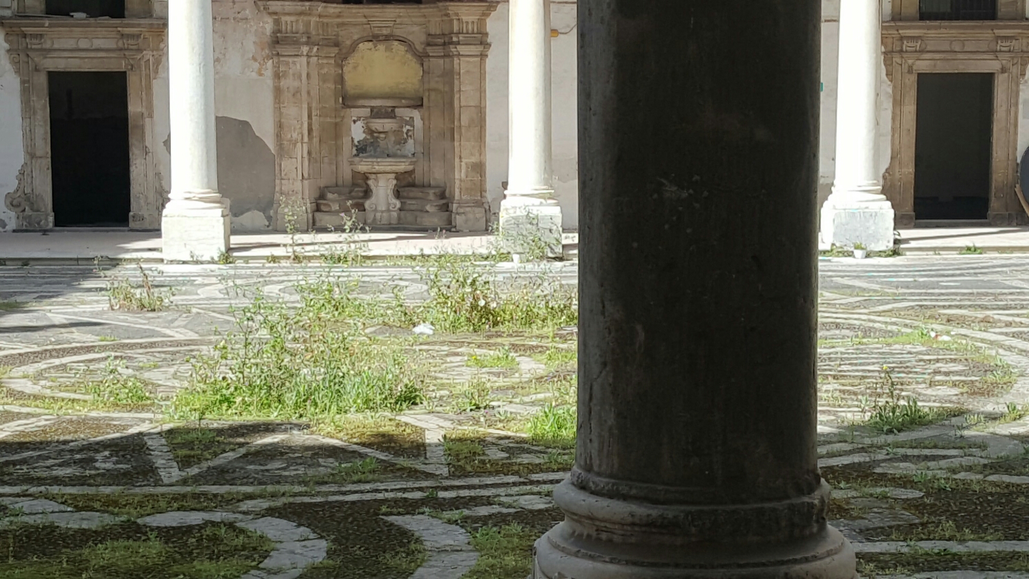 From the interior of S. Francesco Borgia, one can look into the courtyard of the Collegio Gesuitico:-