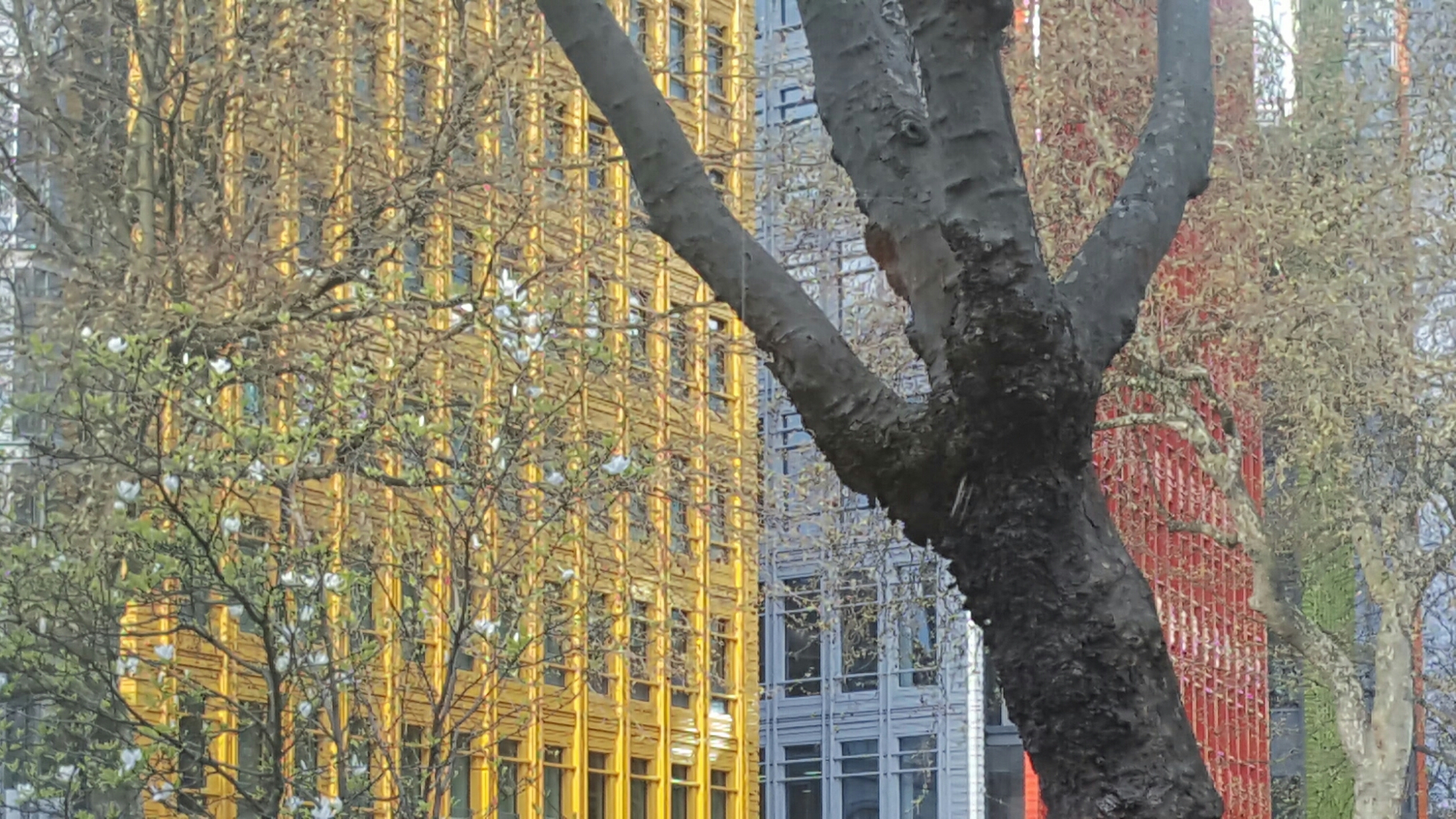 On the other side of the street, Renzo Piano’s amazing, colourful project in Central St. Giles was looking good:-