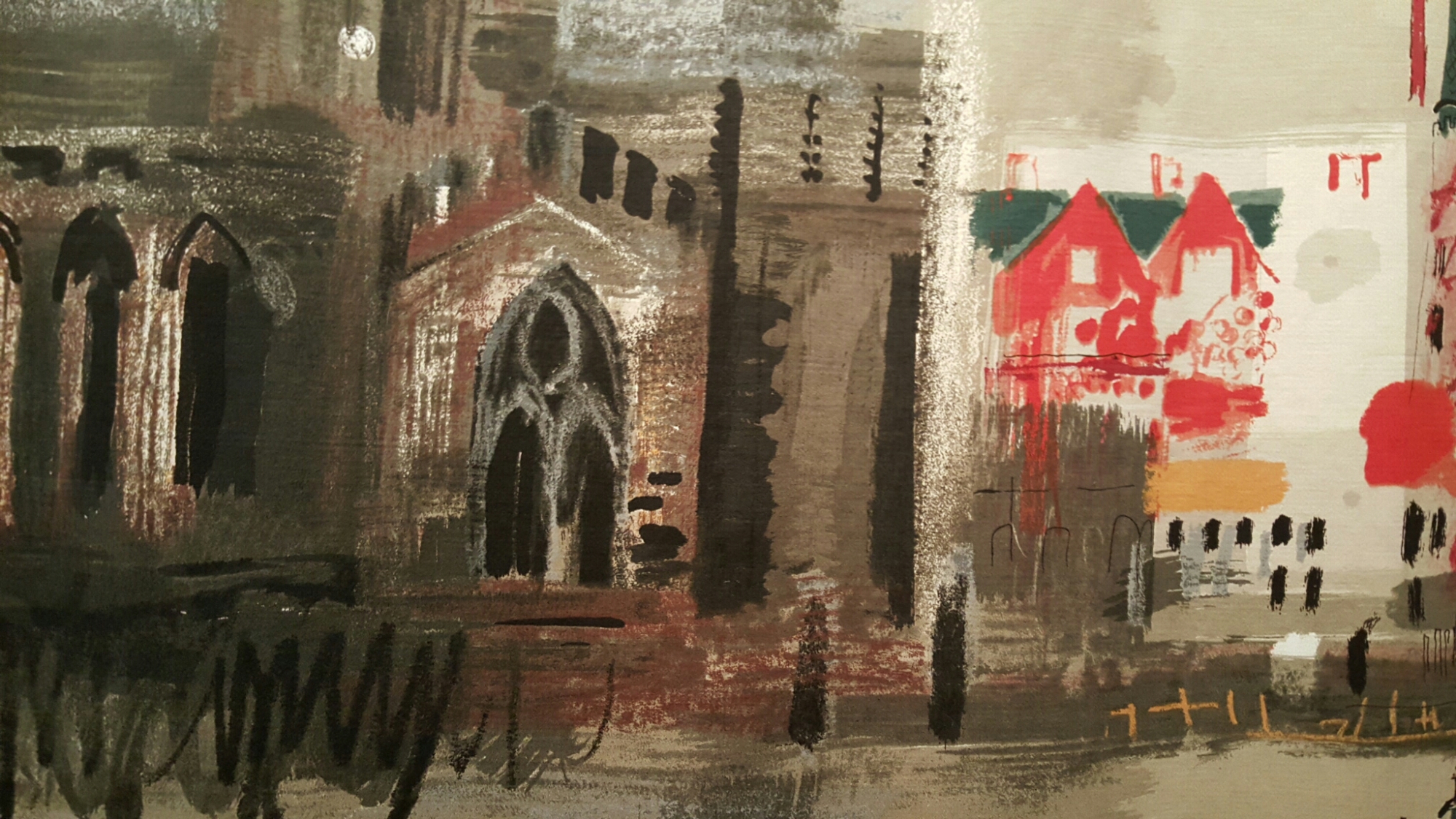 A visit to Chichester gave me a chance to call in very briefly at Pallant House to see their exhibition about John Piper’s work as a textile designer, an aspect of his work with which I was nearly totally unfamiliar, but which is an appropriate subject for Chichester where he designed a cope for Walter Hussey when he was first appointed Dean in 1955 and a set of seven tapestries for the Cathedral fifty years ago.