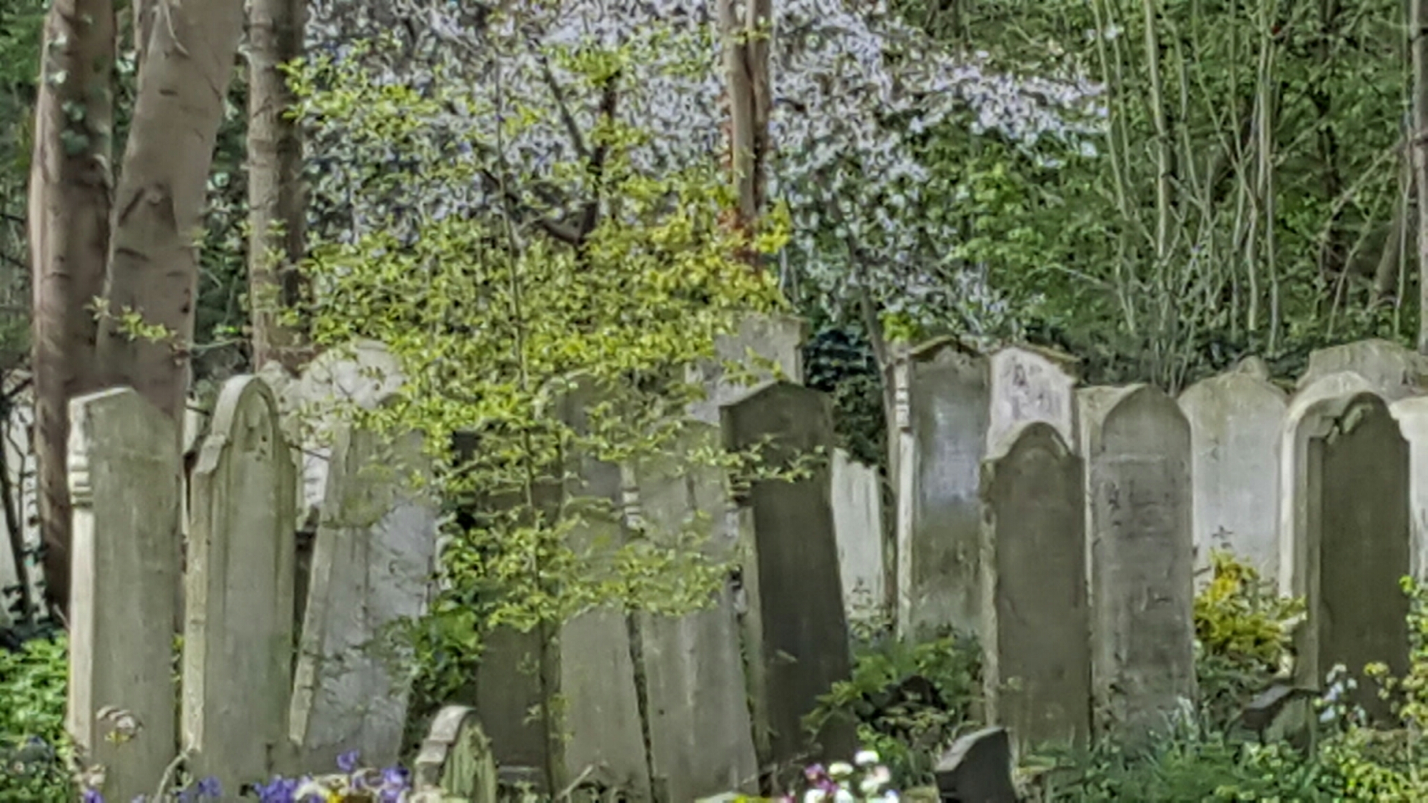 I have done posts on Tower Hamlets cemetery before, but never when it has been covered by bluebells, so that it is a curious mixture of the melancholy memorials of old East Enders, multicultural even in the nineteenth century, together with rampant spring:-