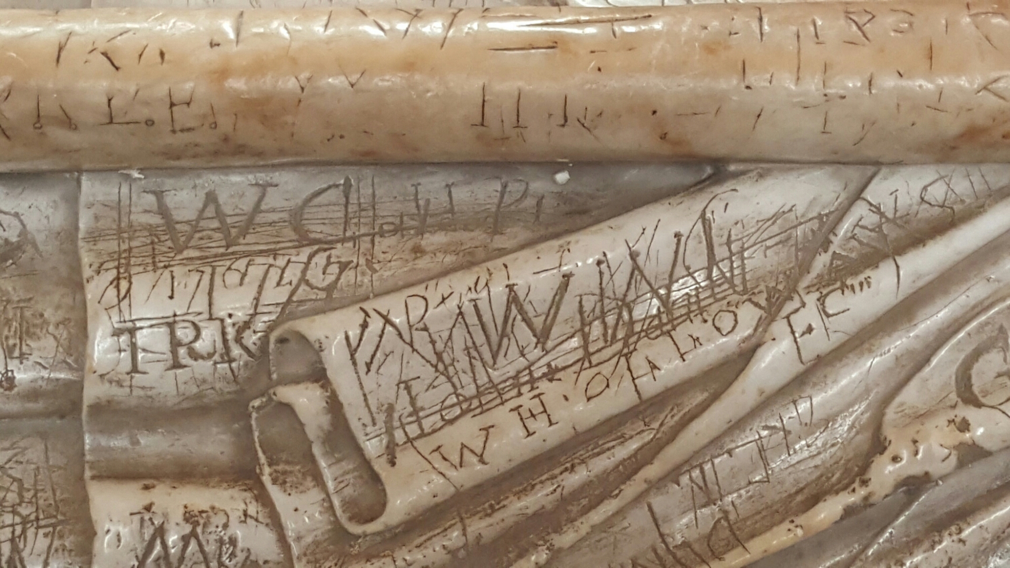 Graffiti on the tomb of Ralph of Shrewsbury:-