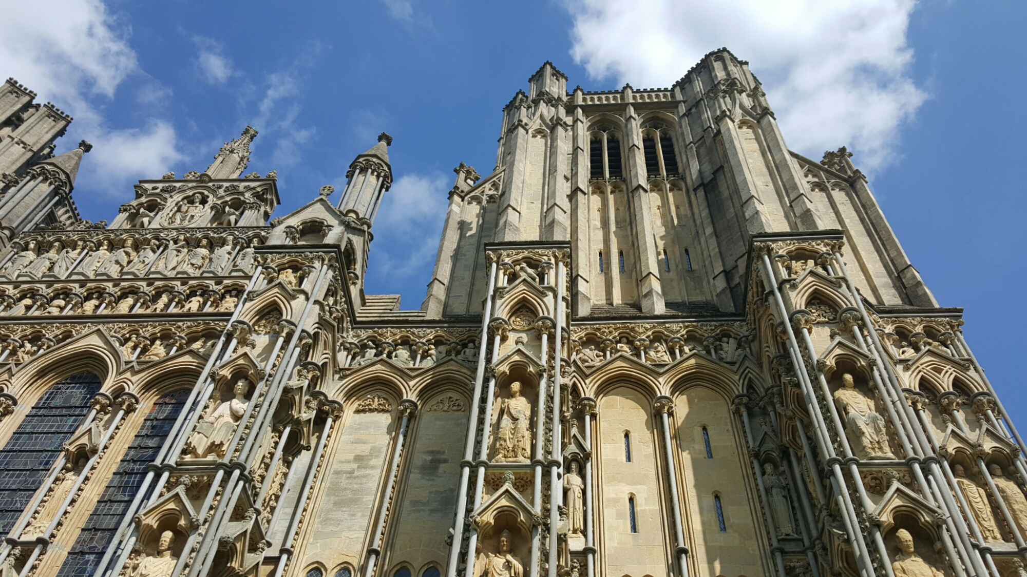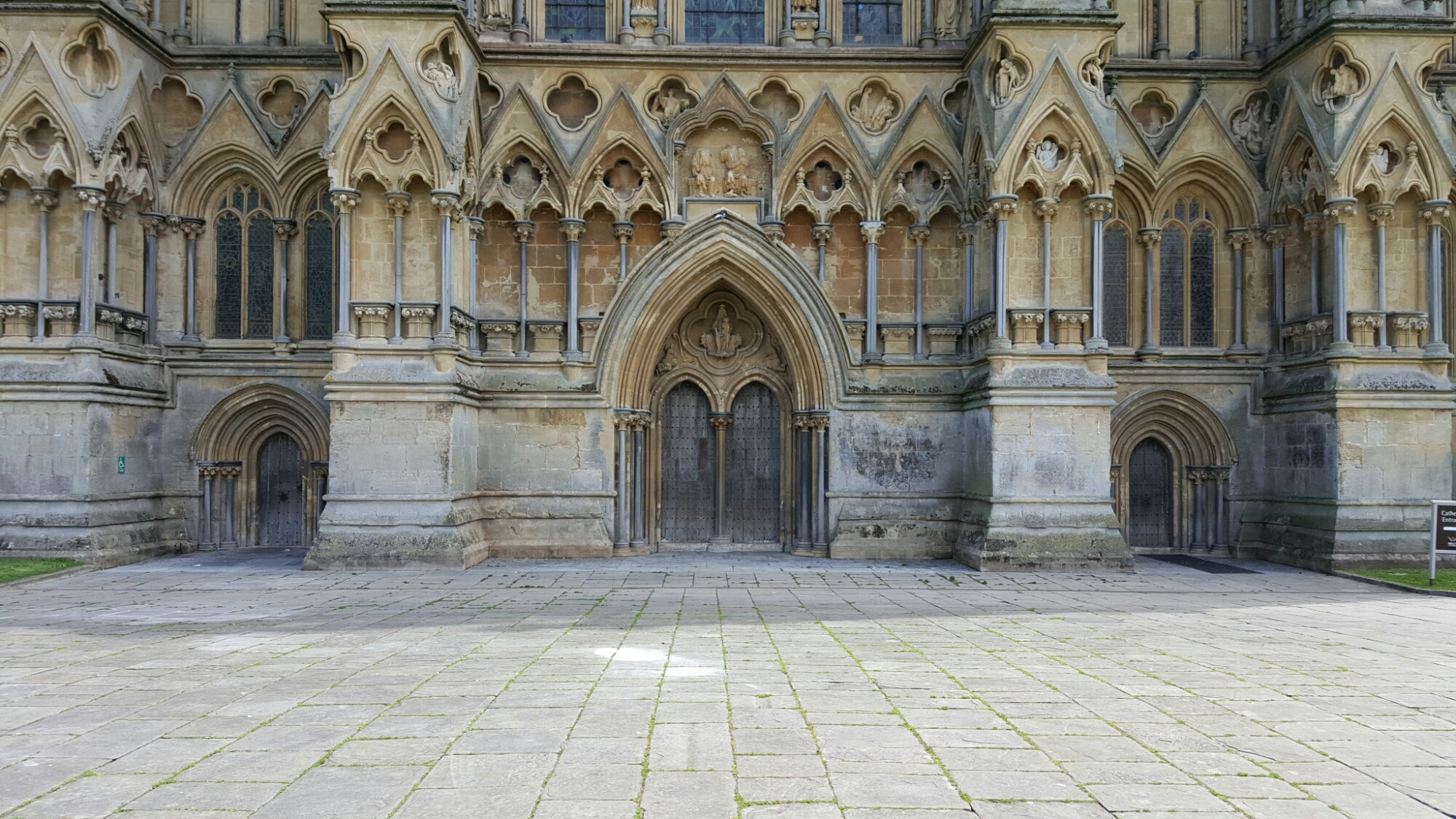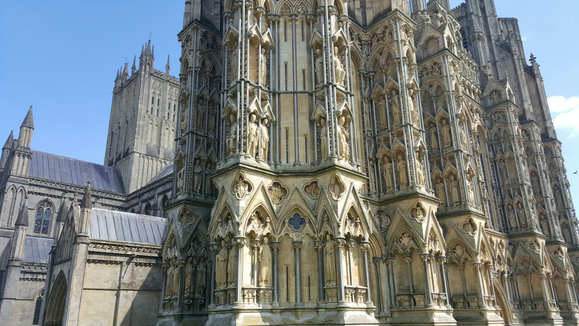 Our first view of Wells Cathedral was from the east, much larger than expected, like a monastic church in France:-