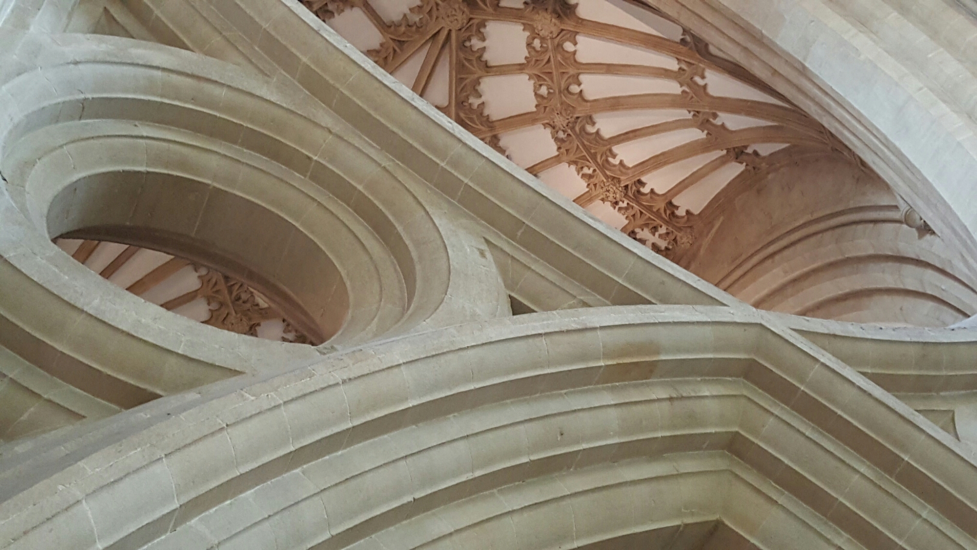 We liked the amazing scissor beam arches designed in the mid-fourteenth century to support the tower:-