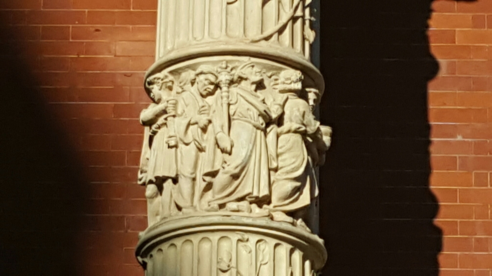 One of the few benefits of a morning which was so cold and wet is that, when the air cleared, it had a crystal clarity. So, I was not the only person who was impressed by the Henry Cole Wing, designed by Henry Scott as a School of Naval Architects, gleaming in the early evening sun, with its abundance of terracotta ornament, the loggia at the top which allowed the students access to fresh air, and its restrained Victorian pomp:-
