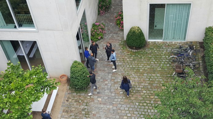 We went to visit David Chipperfield’s Berlin headquarters, originally a nineteenth-century factory in Mitte, now with modern additions, including Kanteen – somewhere for the public to eat as well as staff – and a courtyard space designed by Peter Wirtz:-