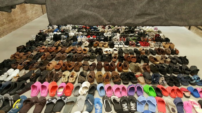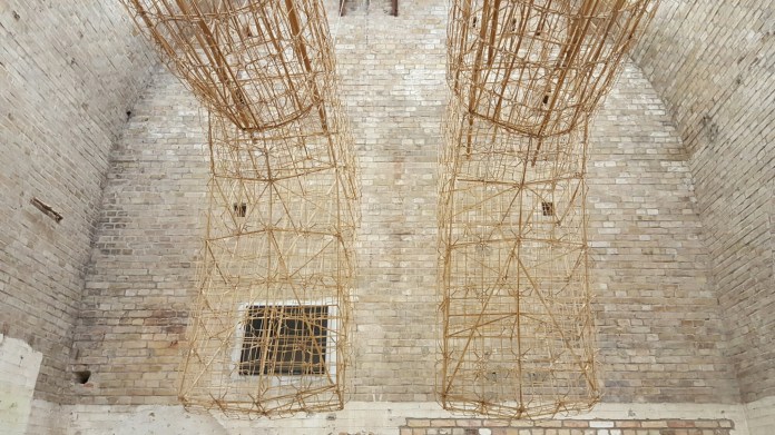 We ended our Berlin tour by visiting Ai Weiwei’s studio underneath Olafur Eliasson in the vaults of the brewery. We didn’t expect to see him, but did – surprisingly serene, away from the refugees, teaching at the university and looking after his son, whilst he prepares for an exhibition at the Palazzo Strozzi. He has accumulated large amounts of clothes from the refugee camps and there was a wonderful wickerwork man suspended from the ceiling:-