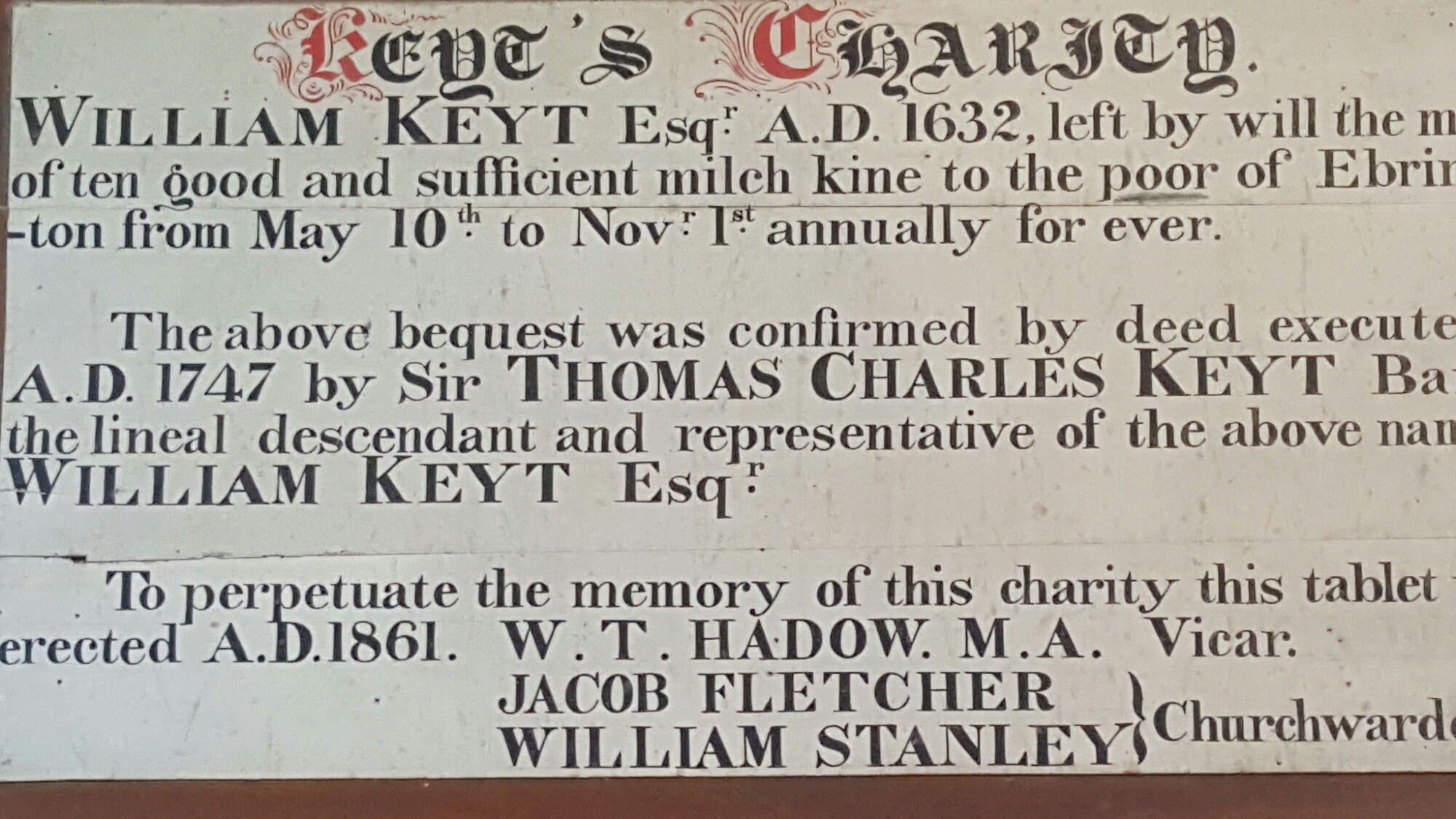 I’ve been at the funeral of Romilly’s aunt, starting in a crematorium in a wood near Leamington Spa – shades of The Loved One – followed by a church service in Ebrington where she retired after a lifetime as a Nightingale nurse, Fulbright scholar, work as a civil servant in the Department of Health and then internationally as a hospital planner. I had been in the church many times over the years, but never registered the quality of the church monuments, nor the benefaction of William Keyt who left ‘the milch of ten good and sufficient milch kine to the poor of Ebrington’:-