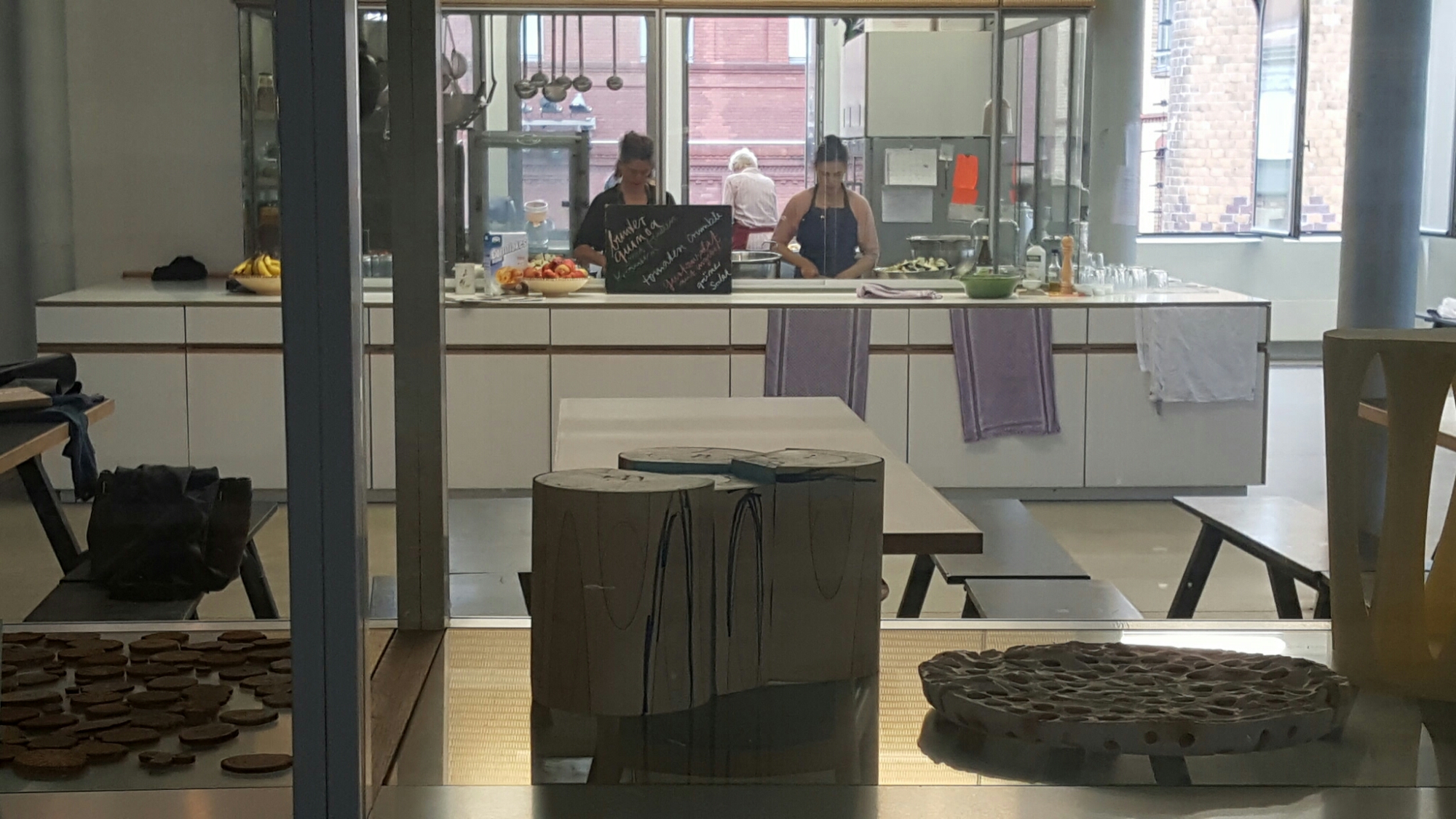 We started at the Olafur Eliasson Studio in Prenzlauer Berg, several floors of an old brewery, all focussed on the kitchen on the first floor where the staff congregate at lunch-time (Eliasson has just published a cookbook):-