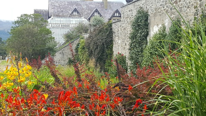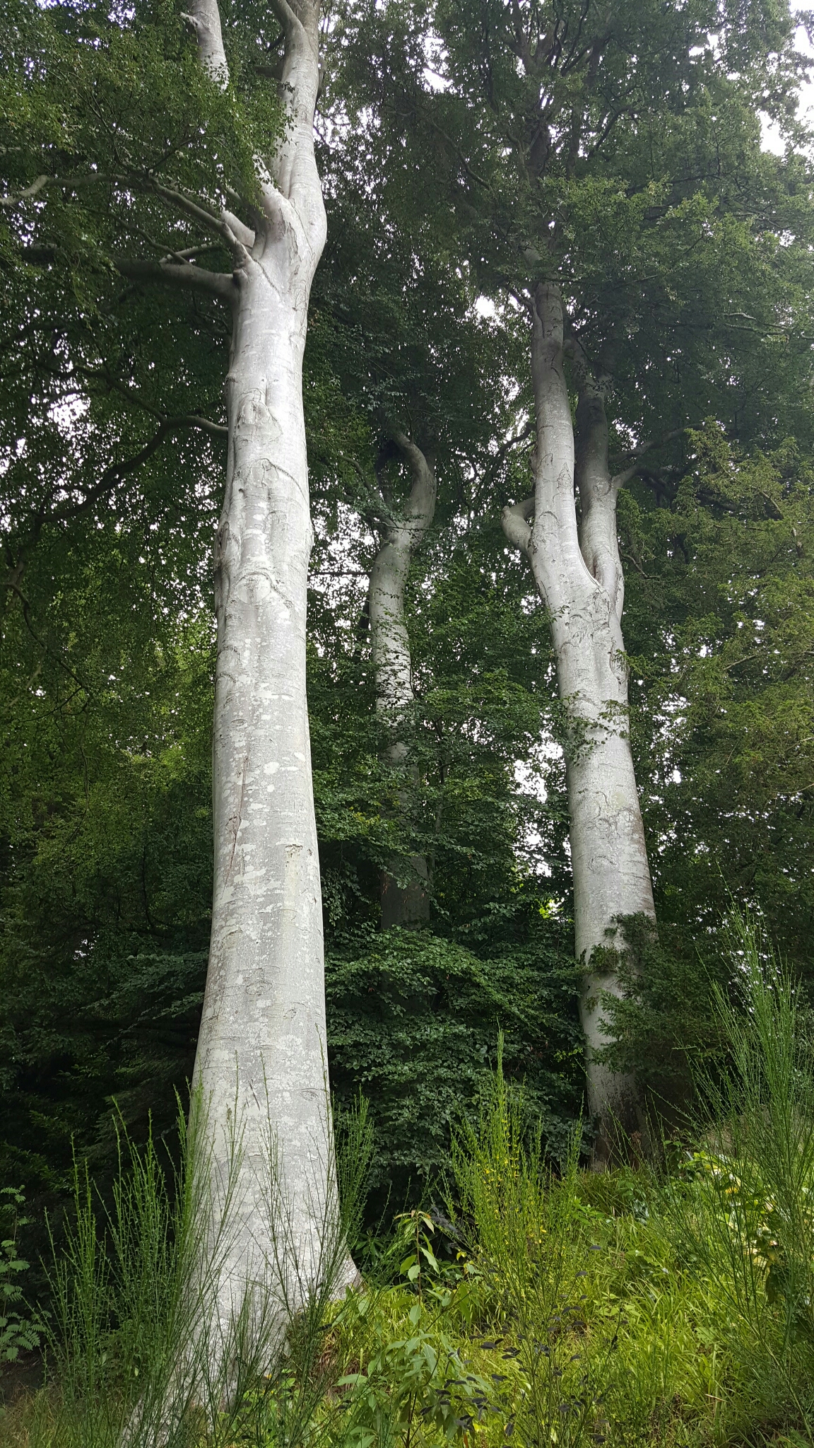 We went to Bodnant to see the garden, first established by Henry Pochin, a successful industrial chemist who bought the estate and employed Edward Milner, a pupil of Paxton, to lay out the garden in grand Victorian style with a water garden, pinetum, and The Poem, the family mausoleum down by the River Hiraethlyn.   His daughter, Laura, married the first Lord Aberconway and it was the second Lord Aberconway who built the layers of terraces, sponsored plant hunting exhibitions in China and the Himalayas and gave the garden to the National Trust in 1949.   The garden is huge and rather gloomy, a monument to grand Victorian arboricultural taste with pine trees from around the world, all protecting the visitor, and presumably the original owners, from the Welsh countryside around.   What I really liked was the bark of the trees:-