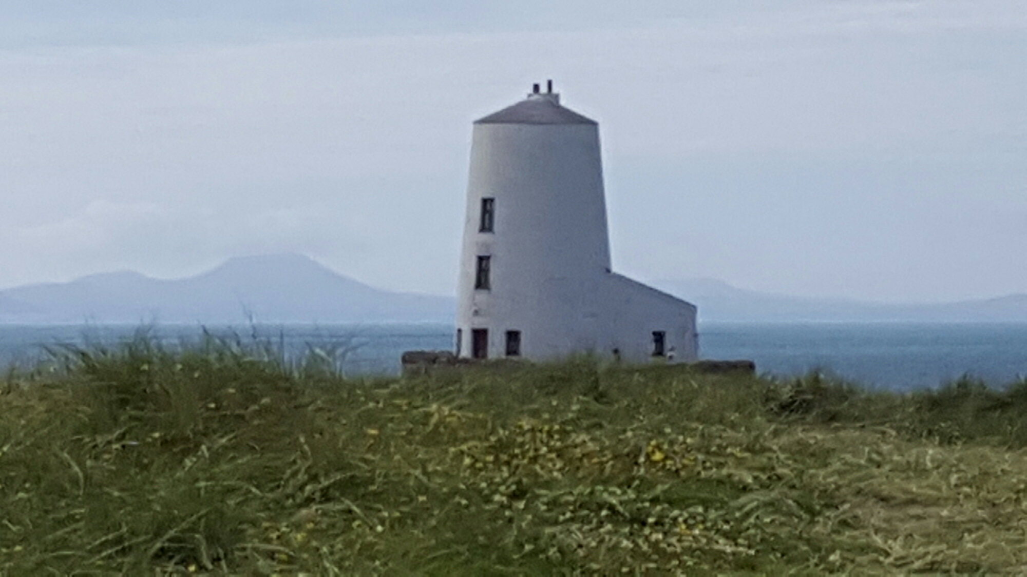 Up a small mound, one sees for the first time Twr Mawr, an early nineteenth-century lighthouse which has been disused at least since 1973:-