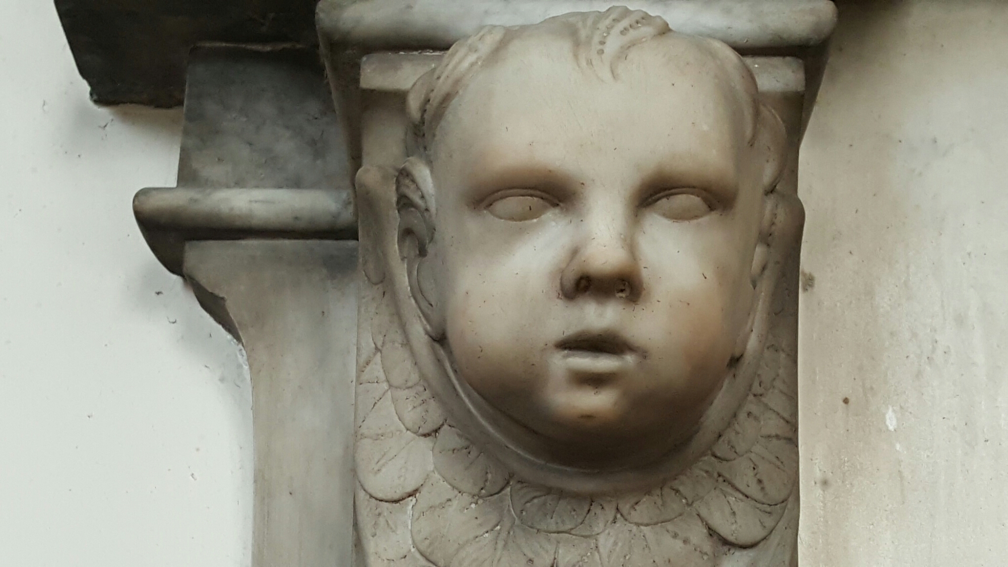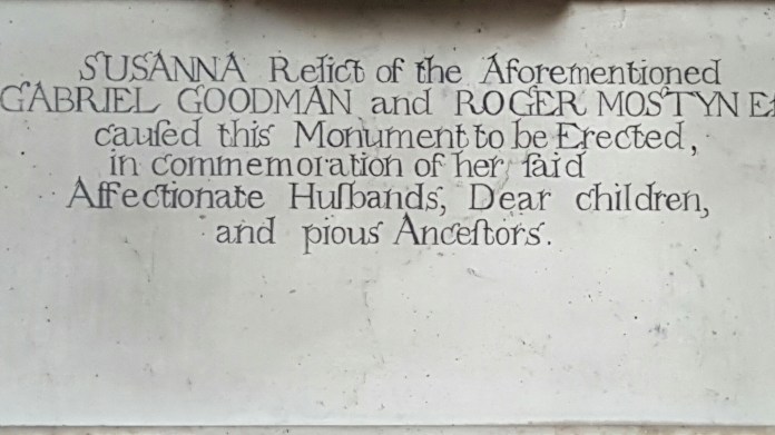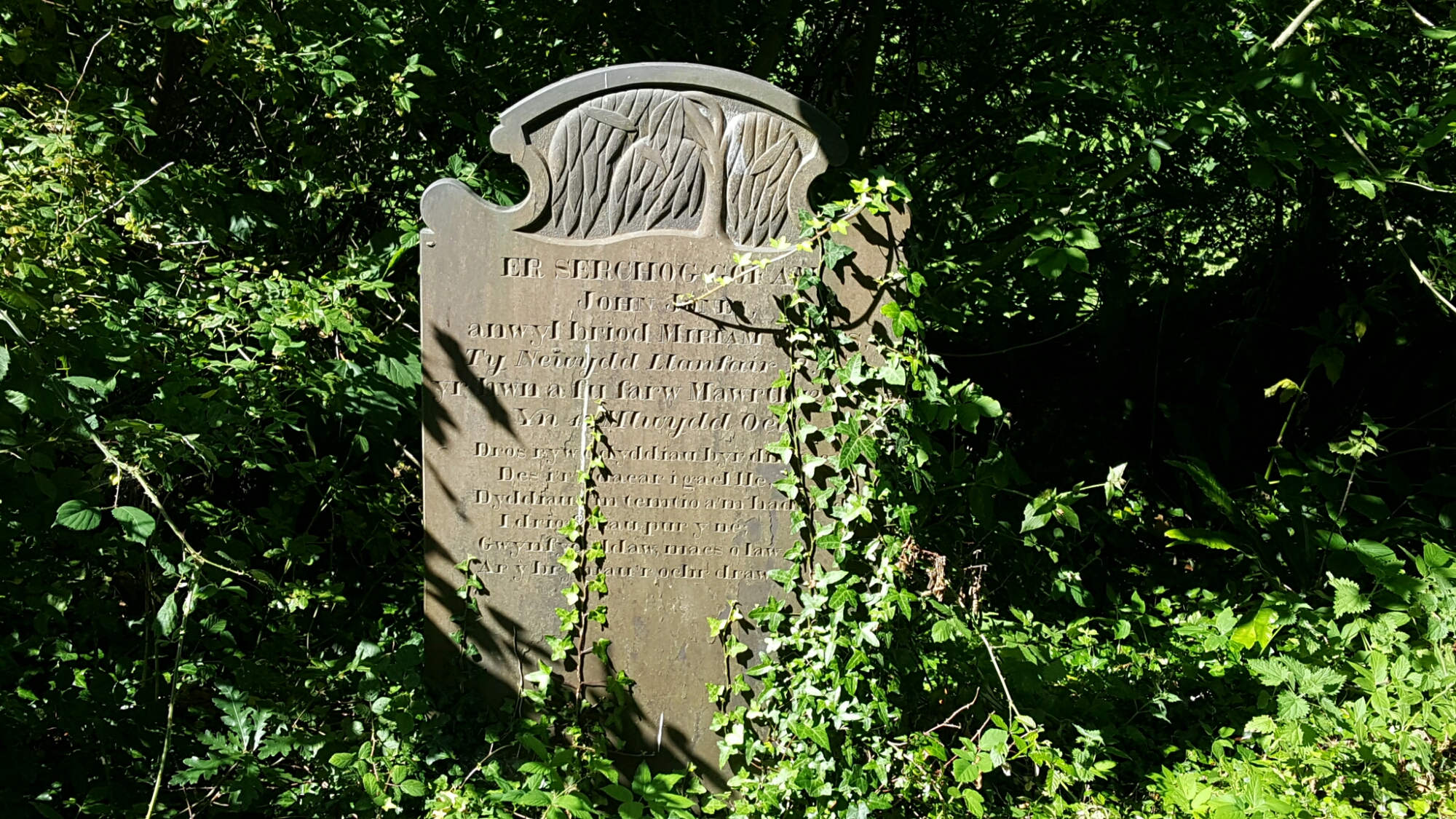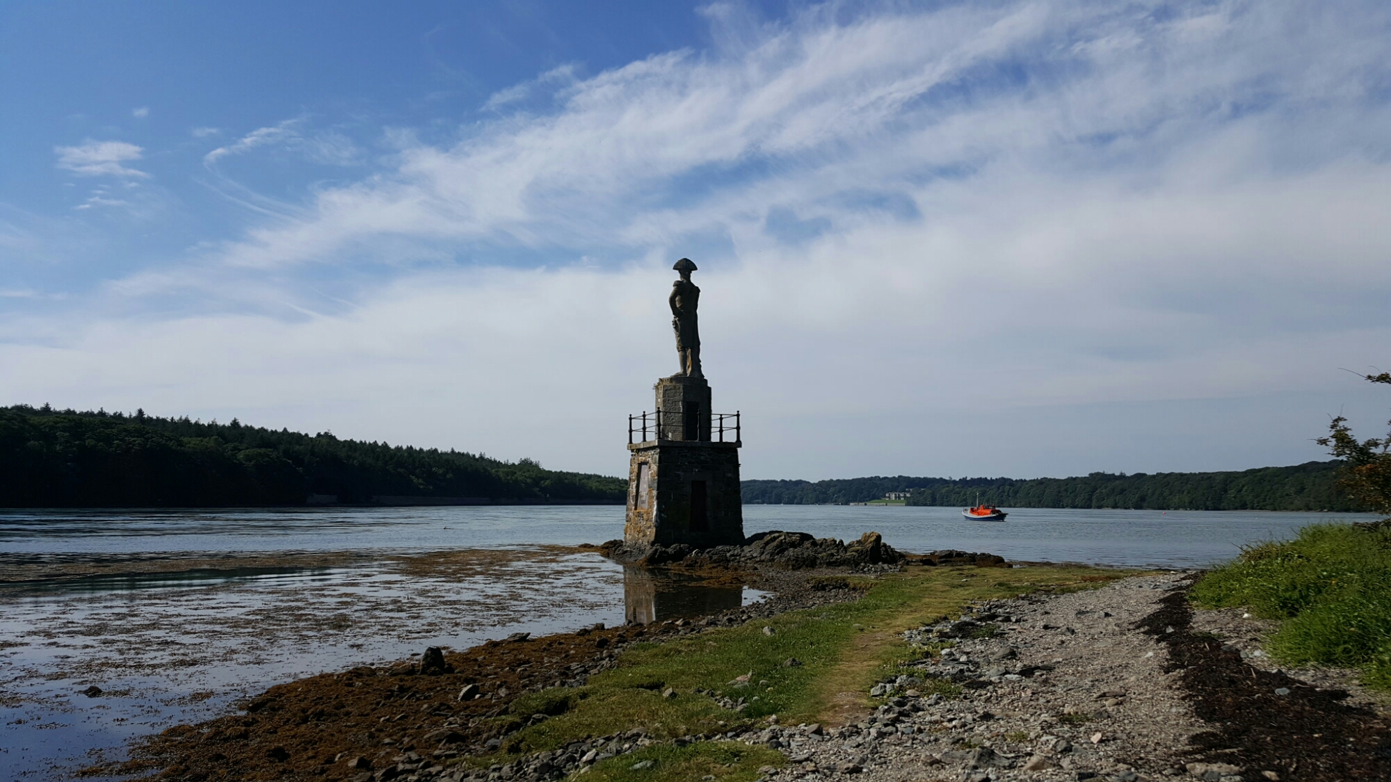 Down a turning off the road into Llanfairpwll, one goes down to the village church of St. Mary, a mid-Victorian building by Henry Kennedy which was locked. But beyond it is the little path down to the Straits and Nelson, with a couple of good slate tombs and a view up across the fields to the monument to the first Marquess of Anglesey, which annoyingly is closed for the foreseeable future.
